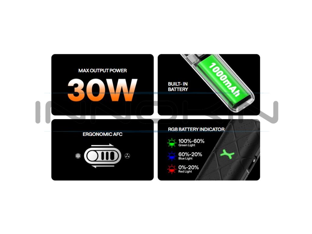 Nejpopulárnější řada elektronických cigaret s POD systémem Xlim od společnosti OXVA představuje model GO, který by neměl chybět ve vapingové výbavě MTL a RDL uživatelů. Tělo baterie s vestavěným monočlánkem o kapacitě 1000mAh je pokryto prvotřídní umělou kůží pro pohodlné držení a jedinečný designe. Autentickou chuť liquidu obstarává automatický výkon až 30W, AFC airflow a populární cartridge V3 s vrchním plněním. V obsahu balení naleznete cartridge V3 o odporu 0,8ohm, avšak Xlim GO zvládne všechny odpory cartridgí V2 a V3.