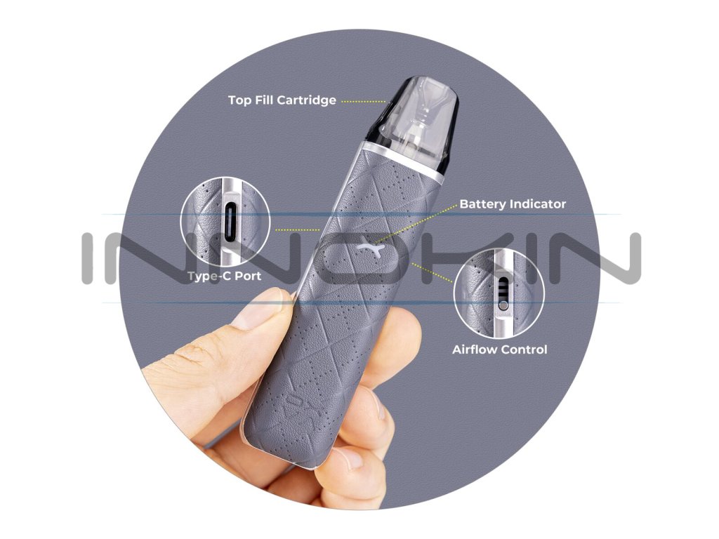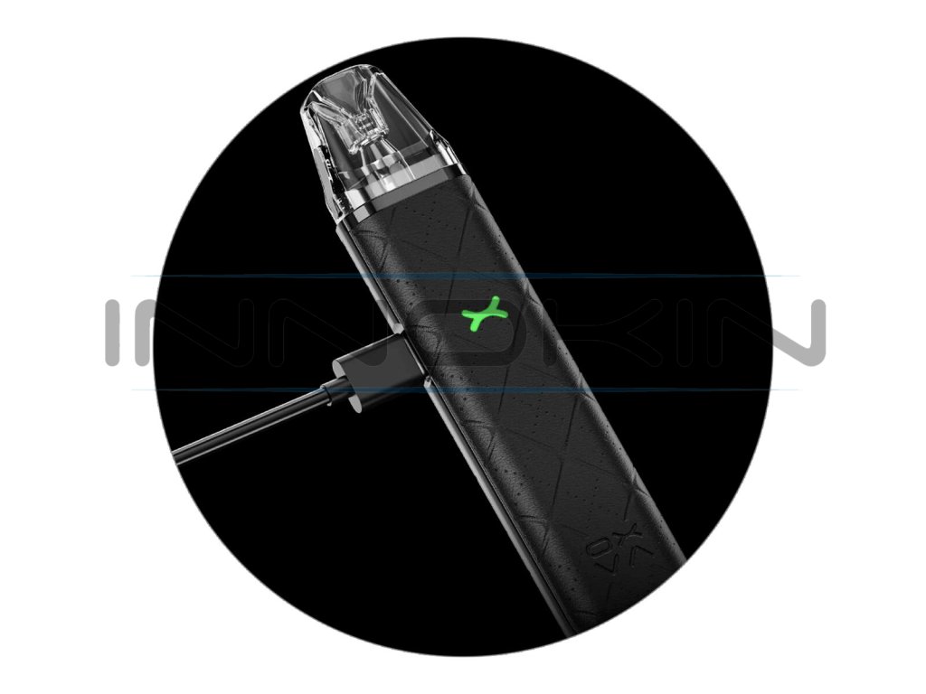 OXVA Xlim GO se pyšní krásně zpracovaným tělem s tradiční podlouhlou konstrukcí, kterou máte u série Xlim v oblibě. Novinkou je jemná textura povrchu díky lepené kůži, kterou najdete na obou panelech zařízení. E-cigareta se příjemně drží v dlani a lepená kůže dodává celému modelu luxusní vzezření.