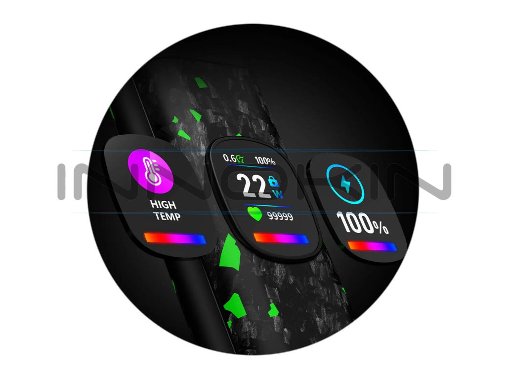 Přední panel opět zdobí krásně zpracovaný zakulacený HD displej s vysokou jemností pixelů a přehledným uživatelským rozhraním. Všechny potřebné parametry tak máte doslova na dlani a díky modernímu rozhraní dodávanému čipsetem DNA je vše nesmírně přehledné a praktické. OXVA Xlim Pro 2 DNA je dalším luxusním designovým kouskem výrobce, tentokrát také v nových a neokoukaných barevných variantách včetně luminiscenčního karbonu u varianty Luminous Forged Carbon Fiber.