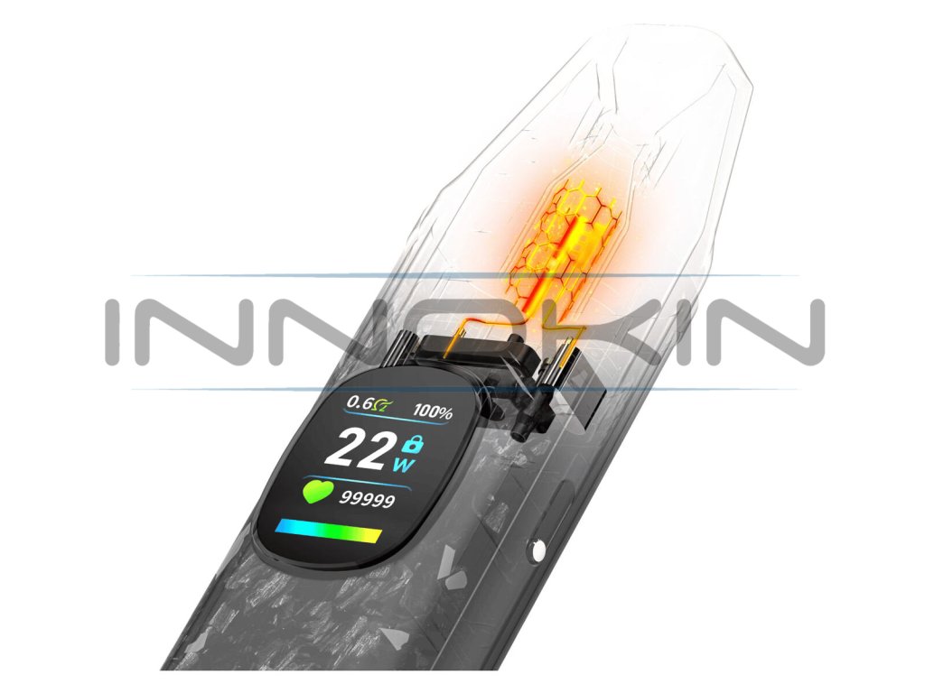 Tělo je poháněno integrovanou baterií o kapacitě 1300 mAh, která zajistí hladký provoz a dlouhou výdrž. Díky čipsetu DNA se můžete těšit také na perfektní power management a ještě delší výdrž proti konvenčním pod systémům. Samozřejmostí je potom také podpora rychlého dobíjení s moderním USB-C rozhraním a podporovanými parametry adaptéru 5V / 2A.