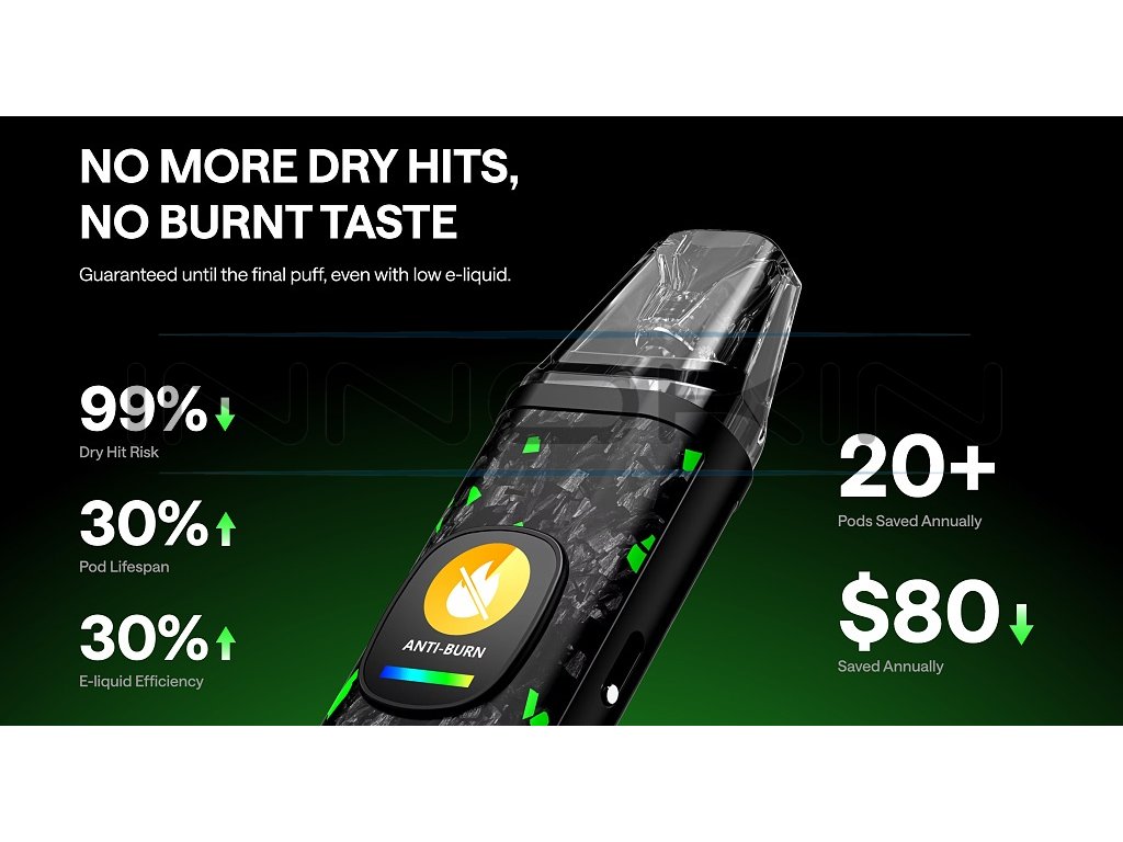 Oceněný designLuxusní konstrukce z kombinace zinkové slitiny, karbonu/IML a PCTG materiálů s elegantními barevnými variantami včetně luminiscenčního karbonu. Oceněno prestižní Muse Design Awards za nejkrásnější elektronickou cigaretu roku 2025 díky dokonalému spojení funkčnosti a estetiky. |