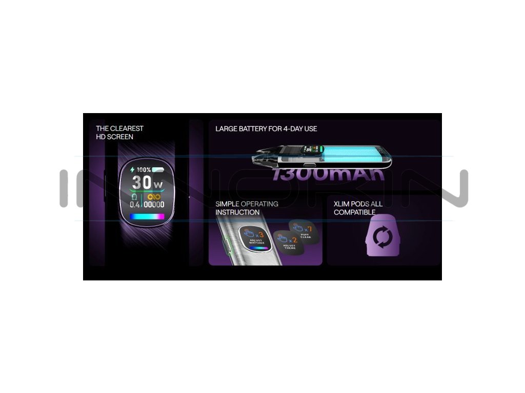 Elektronická cigareta OXVA Xlim Pro byla vyhlášena nejoblíbenějším POD zařízením mezi vapery za období 2023 a 2024. Nyní přichází výrobce s druhou řadou, která si pro Vás přichystala mnoho novinek. Elegantní a čistý designe těla baterie zdobí 0,56 palcový barevný Ultra-HD displej, který poskytuje vynikající přehled o nastavení všech hodnot. Vestavěný monočlánek nabízí vyšší kapacitu baterie 1300mAh, USB-C port s 2A nabíjením a výkonem až 30W. Na boční straně baterie je umístěno regulační tlačítko pro přívod vzduchu, díky kterému si jednoduše nastavíte RDL nebo MTL režim vapování. V obsahu balení najdete cartridge Xlim V3 s horním plněním - není potřeba vyndavat cartridge z těla baterie při plnění liquidem. Cartridge V3 jsou plně kompatibilní s verzí V2.