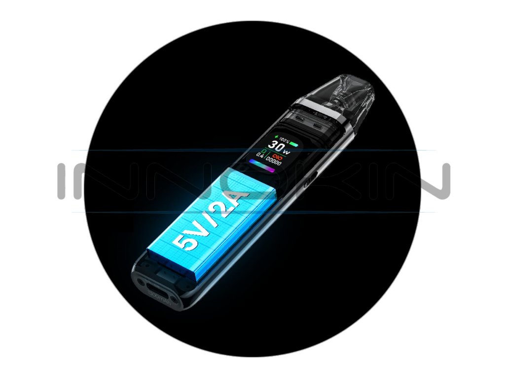 V těle e-cigarety Xlim Pro 2 se nachází integrovaná baterie s kapacitou 1300mAh pro intenzivní používání a pro opravdu dlouhou výdrž. Díky větší kapacitě baterie si užijete delší čas strávený chutným vapováním, než kdykoliv předtím. Baterii si navíc můžete kdykoliv pohodlně dobít díky rychlému portu USB-C s podporou nabíjení 5V/2A. Při zvolení vhodného adaptéru se zvládne dobít na 80% celkové kapacity už za 25 minut.