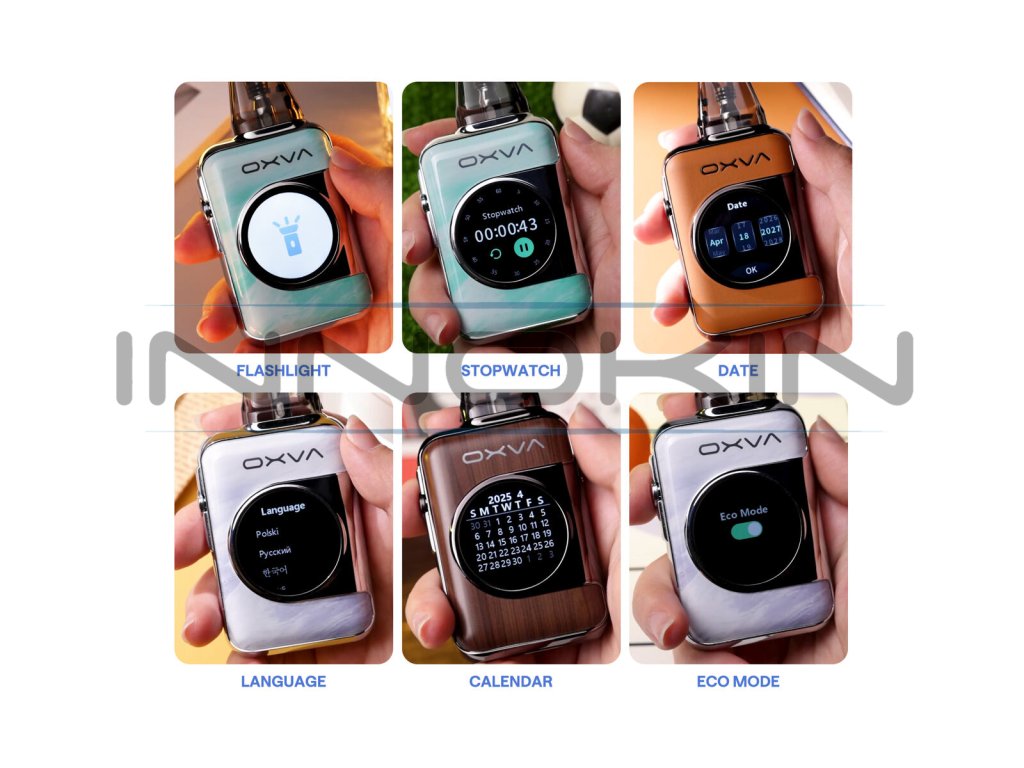 OXVA Xlim SQ Pro 2 není pouhá elektronická cigareta, ale také užitečný pomocník v každodenním provozu. V nastavení nabídne hned šest doplňkových funkcí a užitečných nástrojů, které se vám mohou během dne hodit. Můžete si tak aktivovat funkci svítilny, funkci stopek, funkci zobrazení data, kalendáře nebo změnu jazyka. Šestým užitečným nástrojem je aktivace režimu ECO pro úsporu baterie, pokud svou e-cigaretu zrovna tolik nepoužíváte nebo pokud chcete uspořit část baterie během vapování a nemáte po ruce zdroj nabíjení.