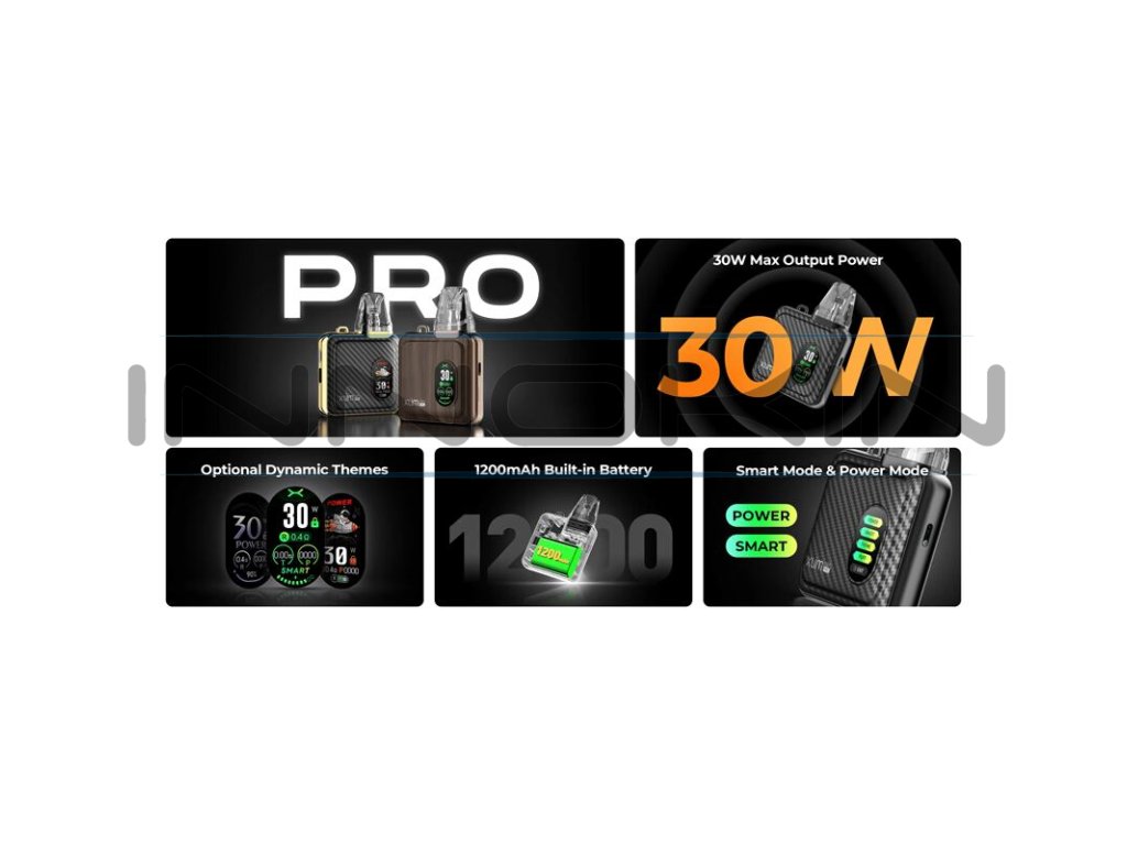 Boční část disponuje krásným barevným TFT displejem, na kterém budete mít neustálý přehled o nastavených parametrech, nebo o počtu potahů, nastaveném výkonu a stavu baterie. Xlim SQ Pro nabídne také přehledné uživatelské rozhraní a velice snadné ovládání, v nabídce na displeji se pohybujete pomocí jednoho tlačítka, vše máte nastaveno a upraveno během pár vteřin. E-cigareta umožňuje regulaci výkonu v rozpětí 5 - 30 W a volbu výstupního režimu mezi režimem Power, nebo režimem Smart. Mimo tyto funkce nabídne také hned tři hlavní uživatelská témata, můžete tak vybírat z konvenčnějších grafických rozhraní, nebo z těch odvážnějších. Samozřejmostí jsou potom také dvě metody spínání potahu, nebo praktická manuální regulace airflow. Nesmí chybět ani kompatibilita s kompletní platformou cartridgí Xlim Pod. Osvědčené cartridge Xlim V3 Top Fill najdete také v základním balení, postarají se o mimořádný chuťový zážitek a ještě umocní celkové kvality zařízení SQ Pro. Model OXVA Xlim SQ Pro Pod je určen všem milovníkům MTL šlukování, kteří se poohlíží po velice stylovém zařízení nabitém funkcemi a s jedinečným zpracovaním.