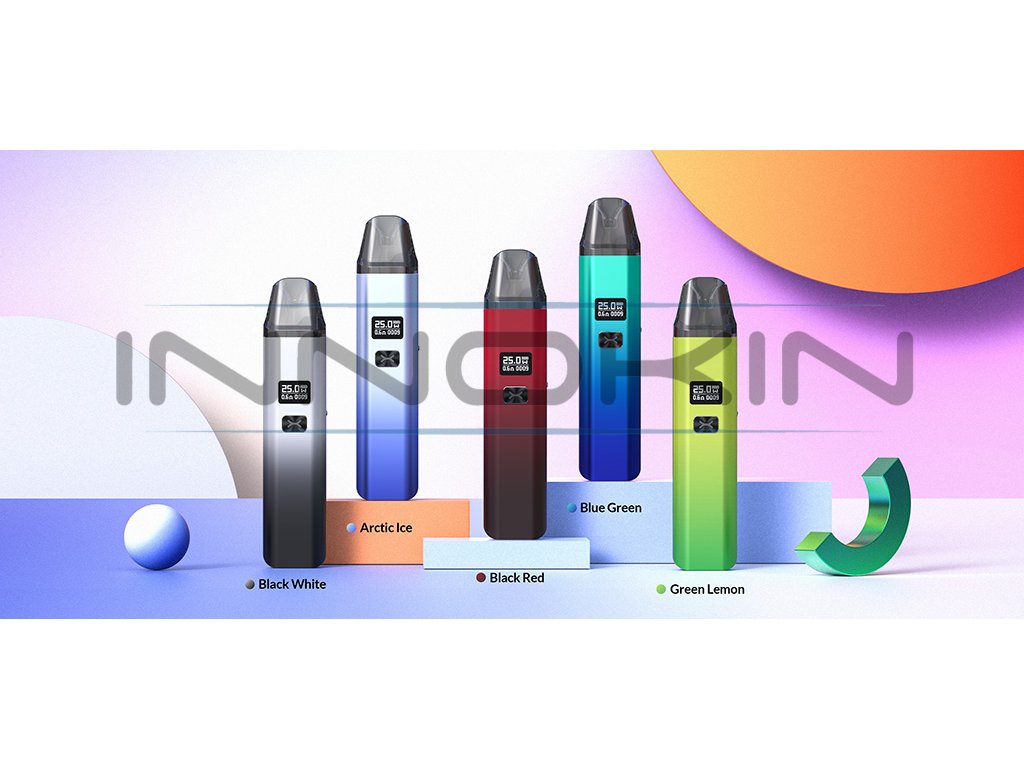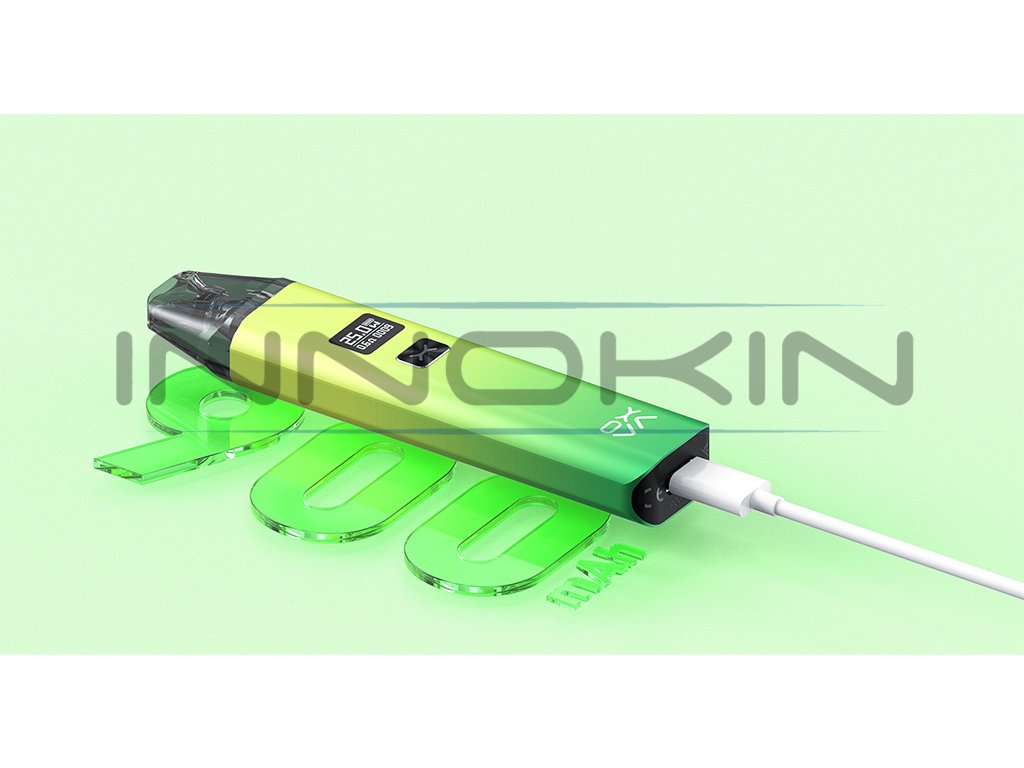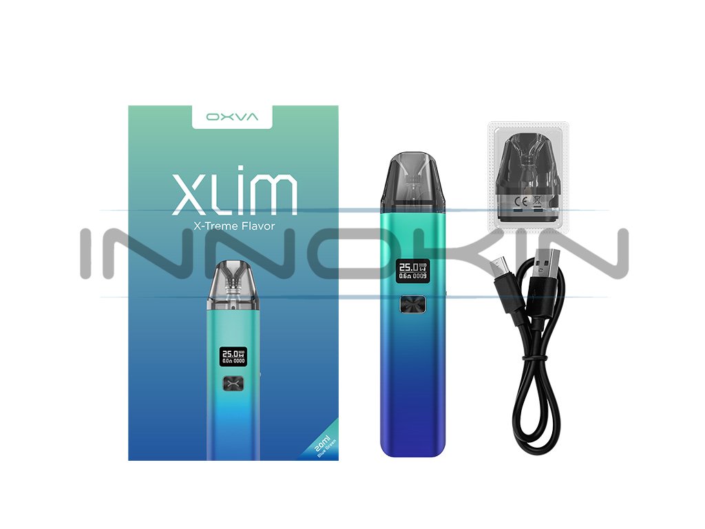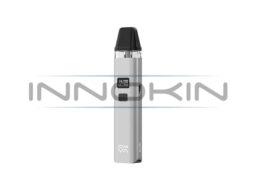 Kompaktní Pod elektronická cigareta s možností regulace výkonu, integrovaná baterie o kapacitě 900mAh, inovativní AirFlow, OLED displej. Výkon 5 - 25W, kapacita Cartridge 2ml, podporovaný odpor 0,6 - 1,2 ohm, rozměry 111 x 24 x 14 mm, USB-C nabíjení, 2x Cartridge OXVA Xlim Pod 0,8 a 1,2ohm v Setu. Barva Stříbrná.