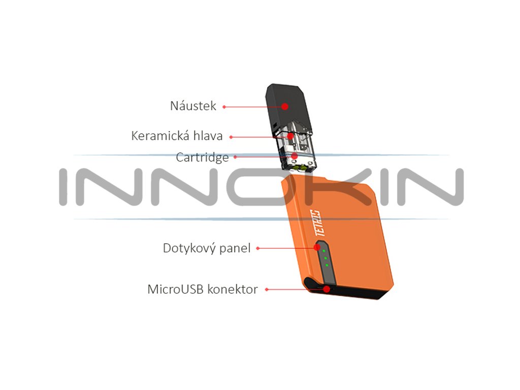 Ve vrchní části baterie je umístěna cartridge se stylovým náustkem a objemem 0,5 ml. Uvnitř této cartridge se nachází integrované žhavící tělísko VPOCERA™ Zisha obalené keramickou vrstvou. Toto patentované tělísko dodává mimořádně jemnou chuť páry a skvěle prokresluje chuť každého e-liquidu. Díky odporu 1,5 ohm navíc můžete bez obtíží používat také náplně s nikotinovou solí, nebo řadu e-liquidů s vyšší koncentrací nikotinu.