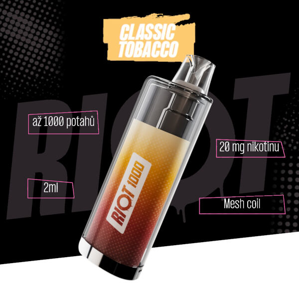 255569 riot 1000 disposable pod kit classic tobacco intenzita nikotinu 20mg kolek r