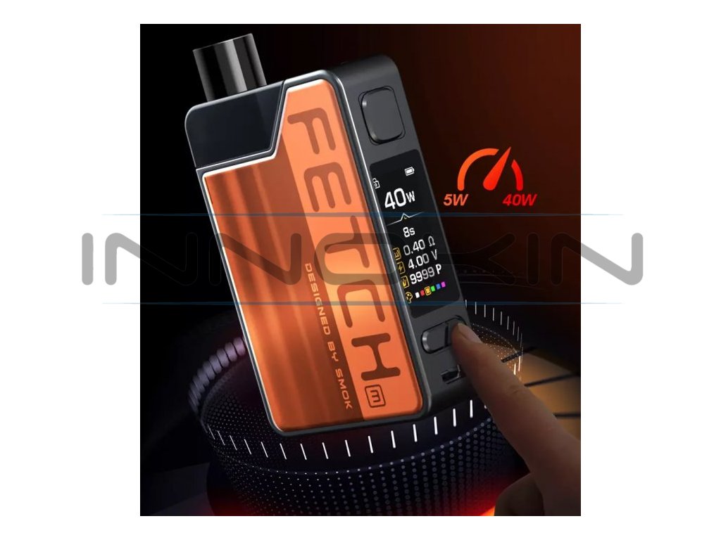 Není určeno pro náplně obsahující nikotin! Smoktech FETCH Mini je inovativní grip s POD systémem, integrovanou baterií o kapacitě 1200mAh a nastavitelným výkonem až 40W. Obě strany gripu jsou vyrobeny z kvalitního PCTG materiálu, který se používá především v potravinářství. Přední panel zdobí 0,96 palcový displej, který umožňuje jednoduché nastavení hodnot a zobrazuje všechny potřebné informace. Nabíjení zajišťuje micro USB vstup s dobou nabíjení pouhých 55-ti minut. FETCH nabízí dva typy cartridgí o objemu 3,7ml pro žhavicí hlavy RPM a Nord. V základním balení budete mít na výběr dvě žhavicí hlavy, a to masivního výrobce páry RPM Mesh o odporu 0,4ohm a Nord Regular o odporu 0,6ohm.