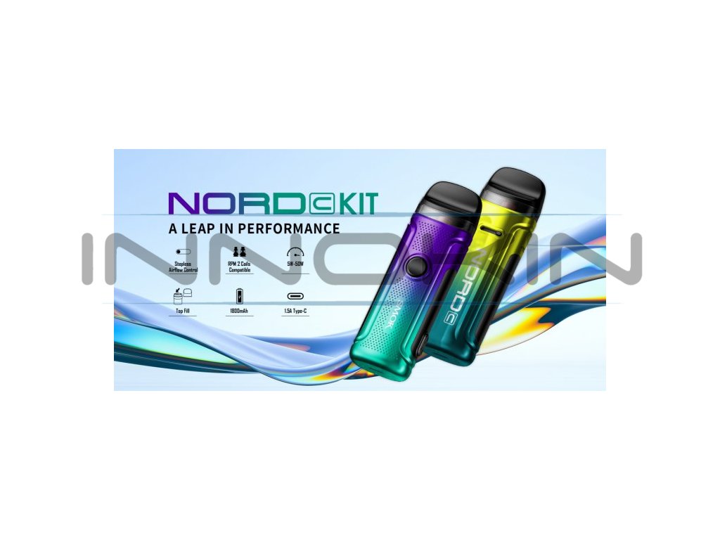 Není určeno pro náplně obsahující nikotin! Smoktech si pro Vás připravil zbrusu nový model elektronické cigarety NORD C, který vás na první pohled zaujme svým futuristickým zpracováním. S tímto ,,parťákem´´ si na cestě vapingu užijete nepřekonatelný DL zážitek za doprovodu té nejlepší chuti liquidu. Kompaktní tělo baterie přináší vestavěný monočlánek o kapacitě 1800mAh, nastavitelný výkon až 50W, inovativní regulaci přívodu vzduchu AFC a rychlé nabíjení pomocí USB-C portu. Na boční straně je umístěn OLED displej, který umožňuje jednoduché nastavení hodnot a zobrazuje všechny potřebné informace. Mezi jeho další přednosti patří ochrana proti zkratu a přehřátí či 8-mi vteřinová ochrana žhavení. Cartridge Nord C o objemu 4,5ml spolupracuje se žhavícími hlavami RPM2.