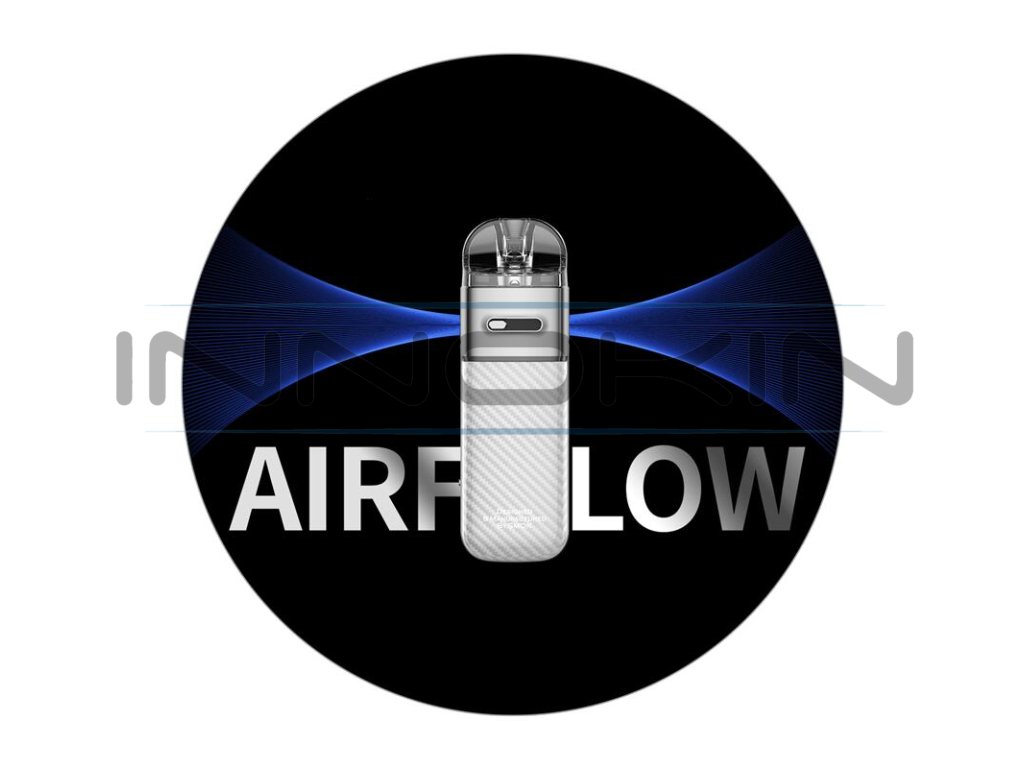 V boční části se nachází otvory pro přívod vzduchu ke cartridgi. Kolik vzduchu se do zařízení dostane si budete moci pohodlně upravit podle potřeby. V zadní části e-cigarety se nachází manuální posuvník pro regulaci přívodu vzduchu. Ať už preferujete volnější, nebo utaženější potah, vše si nastavíte během pár vteřin.
