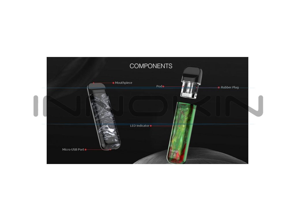 Elektronická cigareta Smoktech NOVO patří mezi nejžádanější přístroje pro vaping s POD systémem, a proto není divu, že výrobce představuje její druhé pokračování. Moderní designe těla baterie ukrývá vestavěný monočlánek o kapacitě 800mAh s automatickým spínačem, LED indikátorem stavu nabití a maximálním výkonem až 25W. Inovativní cartridge (POD) o objemu 2ml je přizpůsobena pro pohodlné vapování a nabízí nové modely vestavěných žhavicích hlav NOVO 2 Mesh o odporu 1ohm a NOVO 2 DC MTL o odporu 1,4ohm. Společně s bočními drážkami pro přívod vzduchu ke spirálce přináší NOVO 2 více páry a chuti, než je tomu u konkurenčních výrobků. Nabíjení zajišťuje micro USB vstup. Novo disponuje osmivteřinovou kontrolou potahů, ochranou proti zkratu, přehřátí a vybití.