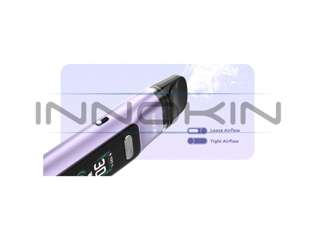 Nezapomnělo se ani na velice oblíbený prvek - manuální Airflow regulaci. Optimálního množství vzduchu, který je přiváděn ke žhavení, lze dosáhnout jednoduchým pohybem posuvníku na boční straně e-cigarety nahoru nebo dolů. Snadno tak můžete přecházet z volného potahování stylem pusa-plíce až do utaženého RDL stylu podle momentální nálady.