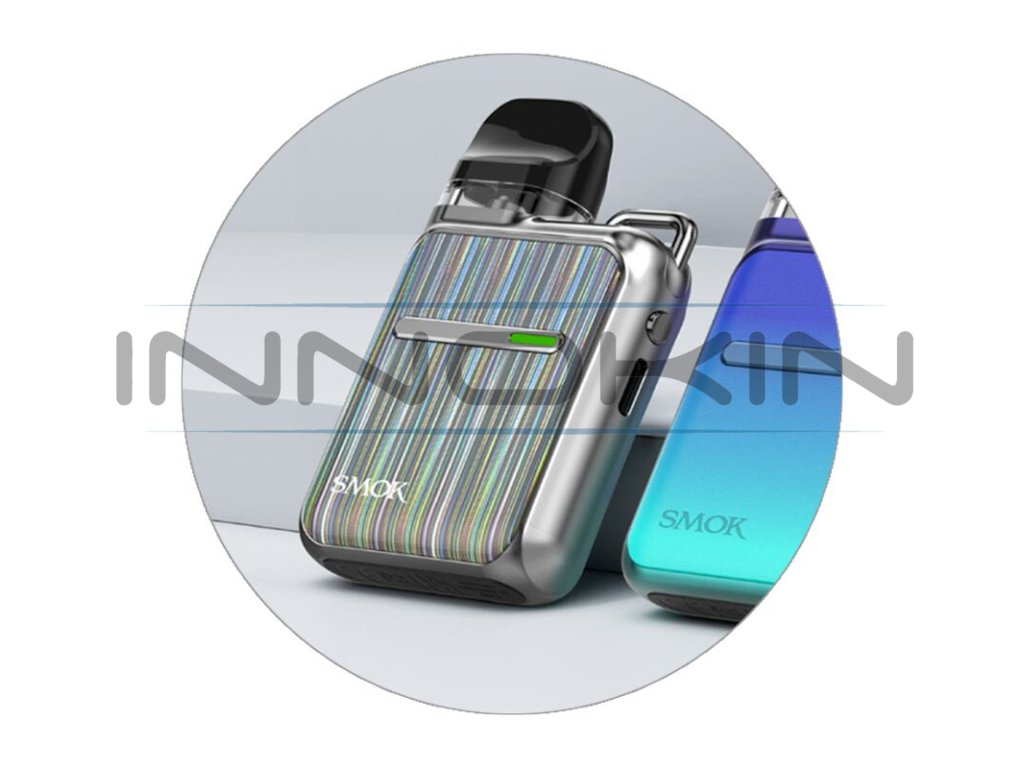 Souběžně s modelem SMOK Novo Master Pod uvádí výrobce Smoktech na trh také jeho kapesnějšího sourozence v krabičkovém provedení. SMOK Novo Master Box Pod Kit nabídne stejné uživatelské výhody, přináší však ještě ergonomičtější design a několik výhod v čele s vyšším dobíjecím proudem. Celé tělo nabídne praktické rozměry 76.3 x 45 x 16.5 mm, skvěle padne do dlaně a snadno ji umístíte také do kapsy. V základním balení na vás čeká také praktická šňůrka pro zavěšení na krk. Tělo e-cigarety je poháněno integrovanou baterií s kapacitou 1000 mAh, která se postará o bezproblémový chod a dodá e-cigaretě dlouhou výdrž. V případě potřeby můžete baterii kdykoliv dobít prostřednictvím portu USB-C, lze dobíjet proudem až 1.4 A. O stavu baterie jste navíc neustále informováni díky praktické LED indikační diodě na ovládacím panelu.