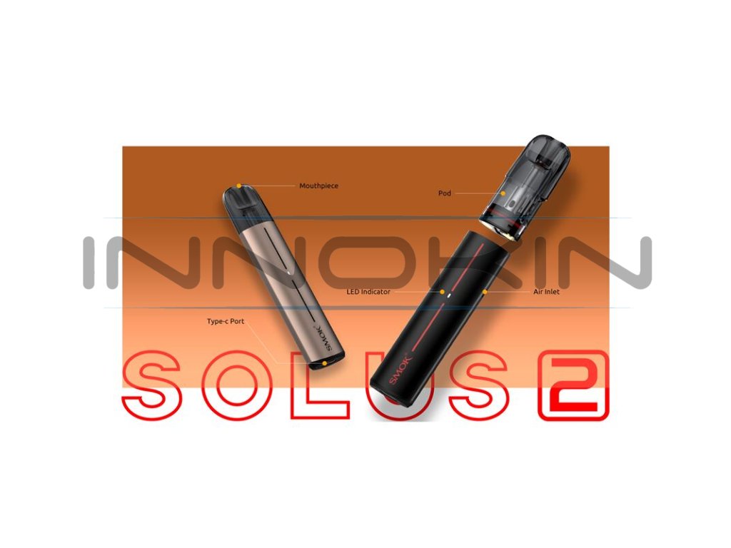 Užívejte si vynikající chuťové podání a moderní design s novým modelem Solus 2 Pod Kit z dílny výrobce SMOK. Praktický pod systém SMOK Solus 2 zaujme zejména lehkou a ergonomickou konstrukcí, oblíbenými funkčními prvky pod systémů a skvělou produkcí páry ve spojení se solidní kapacitou baterie. Celé tělo modelu je vyrobeno z lehké hliníkové slitiny, přičemž celková hmotnost činí jen 32.5 g. Nabídne tradiční design s rozměry 107 x 21.5 x 13 mm pro pohodlné držení v dlani během každodenního potahování. Přímo na těle se potom nenachází jakékoliv tlačítko, provoz je čistě automatický, e-cigareta si tak nastaví potřebný výkon dle odporu cartridge a žhavení probíhá automaticky po potažení z náustku.
