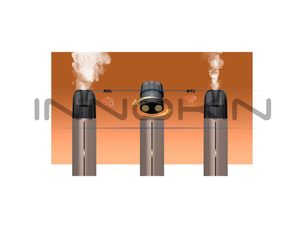 SMOK Solus 2 Pod Kit nabídne jednoduché přepnutí mezi utaženějším MTL potahem a vzdušnějším MTL vapingem podobným populárnímu RDL. Cartridge nabídne z každé strany rozdílný výkroj pro různou šířku vzduchového otvoru. Otočením cartridge na těle tak můžete jednoduše vyzkoušet, zda vám bude více vyhovovat utaženější, nebo volnější potah.