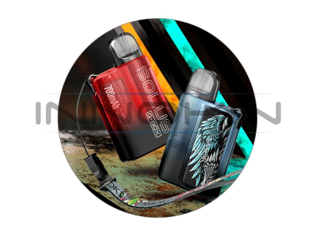 Uvnitř e-cigarety se nachází integrovaná baterie s výbornou kapacitou 700 mAh, která zajistí bezproblémový provoz a stabilní výkon, stejně jako dlouhou výdrž. V případě potřeby budete moci baterii kdykoliv dobít prostřednictvím moderního rozhraní USB-C. Stylovým prvkem je potom praktické LED podsvícení s pěti variantami nastavení, které lze zároveň použít jako indikaci stavu baterie. Model SMOK Solus G-Box je kompatibilní s cartridgemi Solus 1 a Solus 2. V základním balení na vás potom čeká cartridge Solus Pod s objemem 2,5 ml a odporem integrované žhavící hlavy 0,9 ohm. Stejně jako u standardní verze Solus G, i zde najdete praktickou možnost změny tuhosti potahování nasazením cartridge na tělo baterie jedním ze dvou směrů. Jednoduché funkce, snadná obsluha, kompaktní rozměry a stylový design, to vše činí z modelu Solus G-Box neodolatelný kousek jak pro naprosté začátečníky, tak také pro pokročilé vapery.