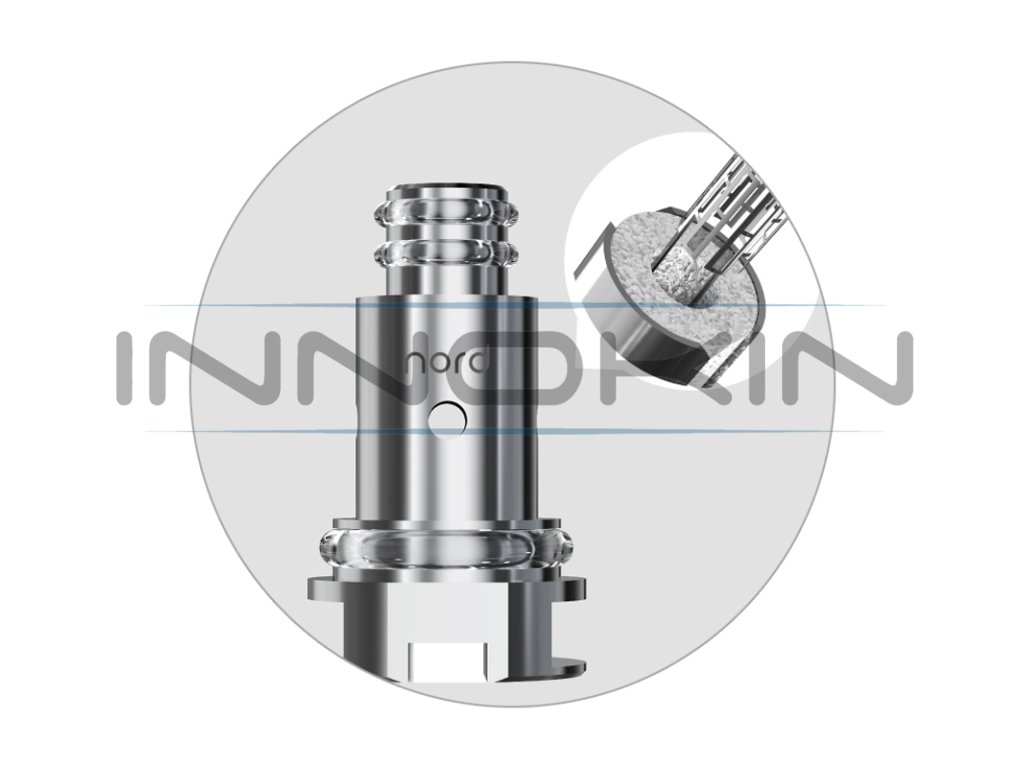 Cartridge ve vrchní části je velice intuitivní díky možnosti výměny žhavící hlavy uvnitř. Nemusíte se tak spoléhat na jeden konkrétní odpor cartridge, v případě nutnosti tělísko jednoduše vyjmete a nahradíte ho za jiné. Cartridge pracuje s hlavami ze série SMOK Nord, jež nabídnou široký rozptyl odporu mezi 0,6 ohm - 1,4 ohm. V balení se nachází hned dvě tato tělíska. První nabídne odpor 0,6 ohm, druhé potom odpor 0,8 ohm.