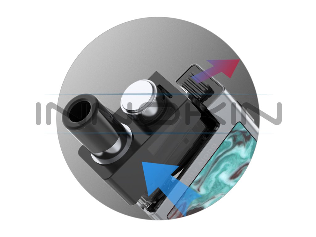 Plnící otvor pro plnění cartridge se nachází hned vedle náustku. U tohoto modelu se nachází jedinečný systém výsuvného plnícího otvoru, který stačí pouze vysunout do strany a začít plnit. Celý proces zabere jen několik málo vteřin a následně se můžete opět uchýlit k pohodovému vapování.