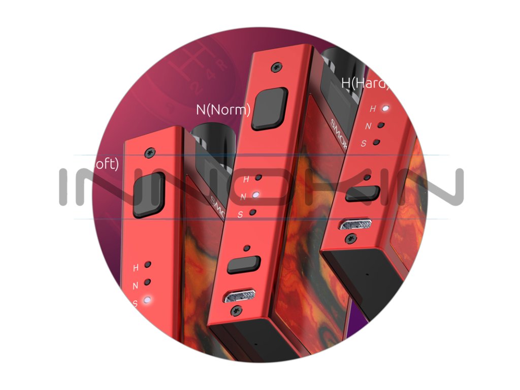 Díky volbě jedné ze tří intenzit žhavení dosáhnete mnohem lepších výsledků, než kdykoliv předtím. Slabší e-kuřáci si mohou navolit intenzitu Soft pro mírnější verzi potahu. Většina běžných uživatelů ocení intenzitu Norm. A pro náročné uživatele, kteří očekávají vyšší produkci páry při MTL potahu je připravena intenzita Hard. Výběr je tak čistě na vás a můžete si potah přizpůsobit plně přesně vašim představám.
