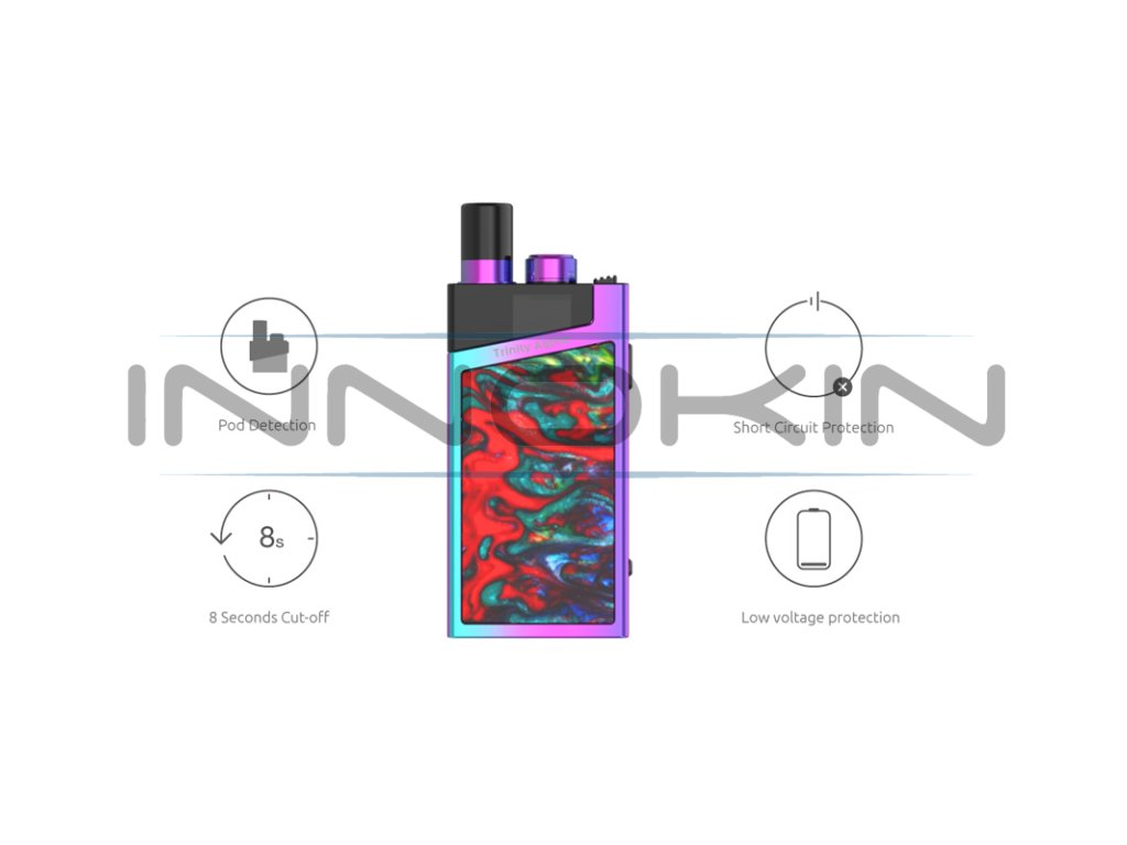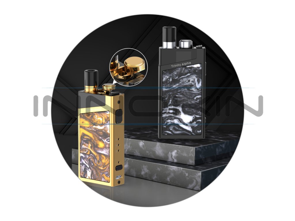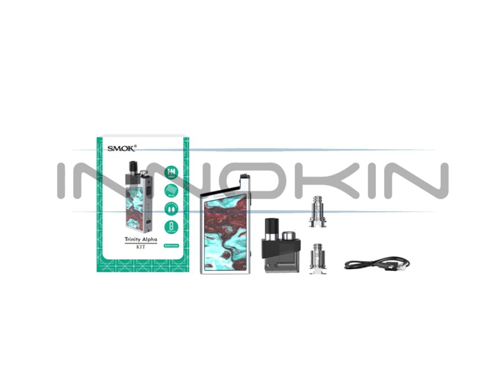 SMOK Trinity Alpha Resin Pod Kit je elegantní elektronická cigareta, která se hodí jak pro každodenní vaping, tak také do společnosti. Stylové resinové boční panely příjemně dotváří celkový dojem a výsledek je naprosto úchvatný. Díky praktickým rozměrům navíc skvěle padne do každé ruky a příjemně se z ní vapuje. Rozměry činí jen 91 x 38 x 16 mm.