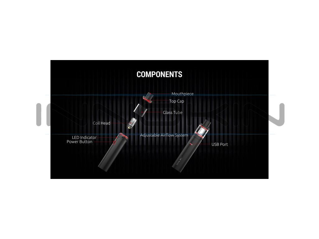 Není určeno pro náplně obsahující nikotin! Elektronické cigarety Vape Pen od Smoktechu přicházejí s verzí V2, kterou si oblíbí jak zkušení uživatelé, tak i úplní začátečníci, a to díky jednoduché obsluze s automatickým výkonem až 60W (výkon je nastavován automaticky v závislosti na zvoleném odporu atomizeru). Ergonomické tělo baterie disponuje kapacitou 1600mAh, LED indikátorem stavu nabití a důmyslným vyváženým přívodem vzduchu pro dokonalou chuť liquidu a optimální kouřivost. Baterie je opatřena speciálním závitem pro clearomizer, který lze jednoduše odšroubovat a vyměnit žhavicí hlavu řady Vape Pen. Používá systém horního plnění - po odšroubování vrchní části plníte liquid přímo do těla nádržky o objemu 3ml. Boční přívod vzduchu zajišťuje velkou tvorbu páry. Mezi její další přednosti patří ochrana proti zkratu a přehřátí, nízkému odporu a 8-mi vteřinová ochrana žhavení.