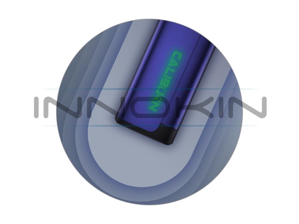 Stylový designový prvek se potom nachází ve spodní části těla. Jedná se o praktickou indikační diodu, která mění svou barvu během potahování podle aktuální úrovně nabití baterie. Podsvícené logo Caliburn je krásně čitelné i na slunci, budete tak mít hladký a neustálý přehled o stavu vaší baterie.