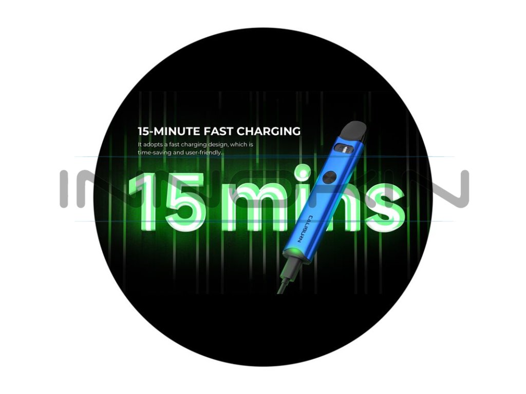 V těle zařízení na vás čeká integrovaná baterie se solidní kapacitou 520 mAh pro dlouhé hodiny nerušeného potahování. V případě nutnosti pak můžete baterii kdykoliv dobít pomocí portu USB-C. Model Caliburn A3 Pod Kit podporuje dobíjení proudem až 2 A, zvládne se tak dobít za neuvěřitelných patnáct minut. E-cigaretu tak můžete mít téměř neustále v provozu a plně nabitou.