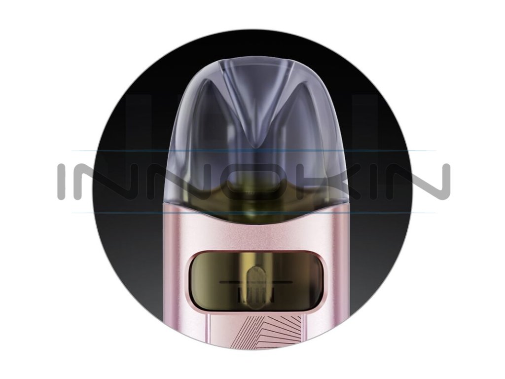 Ve vrchní části e-cigarety Caliburn A3S se nachází cartridge s transparentní PCTG konstrukcí. Díky průhlednému tělu budete mít neustálý přehled o stavu e-liquidu uvnitř cartridge. Pro účely snadného zjištění stavu je model rovněž vybaven oblíbeným průzorem v přední části, pomocí kterého můžete pozorovat také rysku s minimální doporučenou hladinou e-liquidu a v případě potřeby si tak můžete cartridge kdykoliv doplnit.