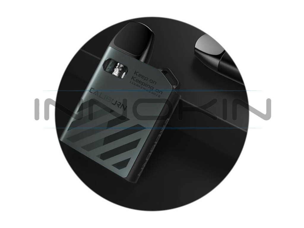 Uwell Caliburn AK2 je nová elektronická typu pod pro klasické šlukování. Jedná se o kompaktnějšího sourozence modelu Caliburn A2, se kterým sdílí také kompatibilitu se stejnými cartridgemi na e-liquid. Caliburn AK2 nabídne ergonomické zpracování a řadu užitečných prvků pro každodenní užívání. Rozměry e-cigarety činí 43,5 x 11,8 x 67,9 mm. Snadno ji proto schováte do kapsy a budete si ji moci vzít kamkoliv s sebou. Tělo je vyrobeno z kombinace hliníkové slitiny a odolného ABS a polykarbonátu. Uvnitř kompaktního těla se nachází integrovaná baterie s kapacitou 520 mAh. Nesmí chybět ani podpora rychlého USB-C dobíjení. Baterii dokáže dobít na 90% kapacity již za neuvěřitelných 35 minut.