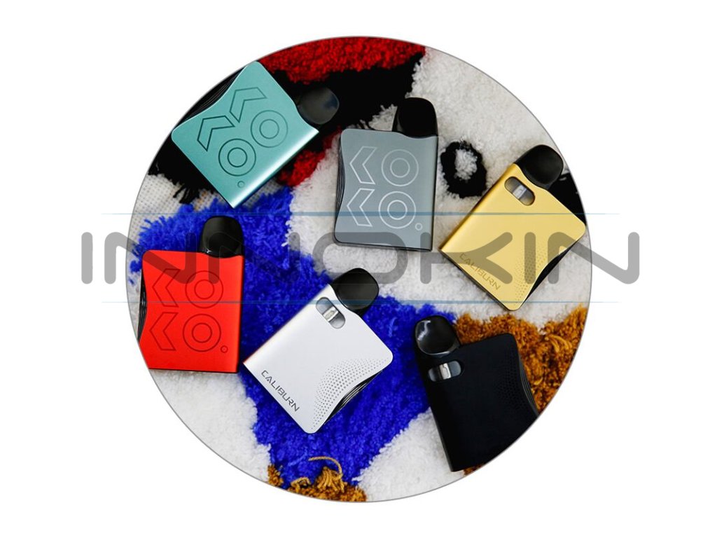 V boční části se nachází unikátní LED indikace, která slouží pro snadné zjištění stavu baterie. Podsvícené logo CALIBURN v boční části je navíc vybaveno stylovou animací, která se spustí po ukončení potahu. Logo začne měnit svou barvu a dodá celé e-cigaretě futuristické vzezření. Funkci animace bočního panelu si navíc můžete v případě potřeby kdykoliv deaktivovat, postačí jen třikrát odpojit cartridge od těla.