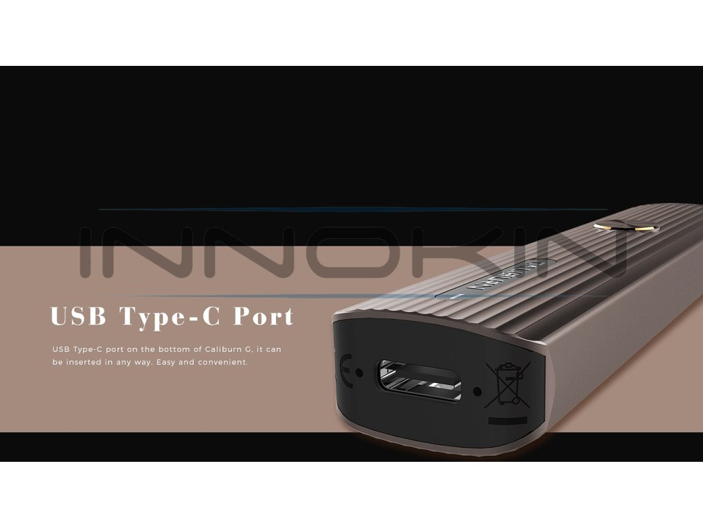 Moderní USB-C nabíjení V praktickém a designově povedeném hliníkovém těle se ukrývá silnější baterie o celkové kapacitě 690mAh, kterou lze ještě snadněji nabíjet rychlým USB-C konektorem, kde už také nemusíme řešit, kterým směrem konektor zapojit. Konektor USB-C se nachází na spodní straně cigarety.