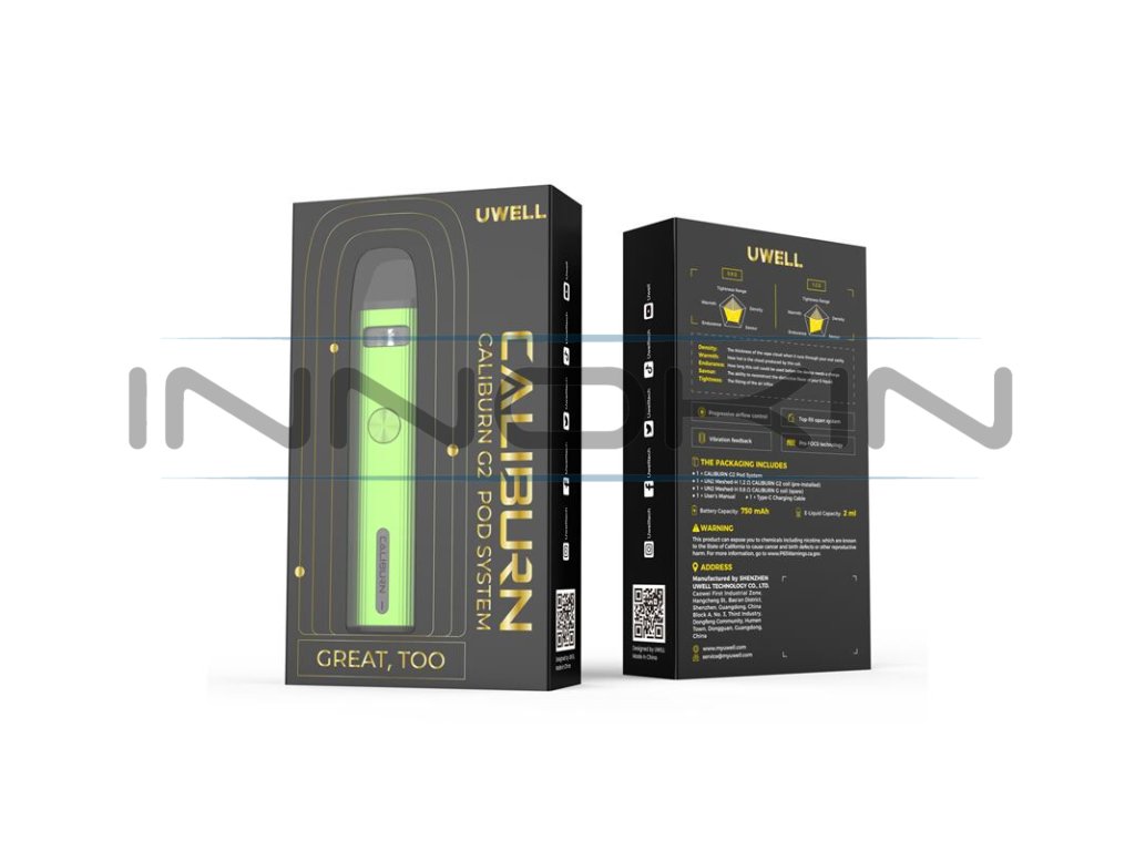 Uwell Caliburn G2 pokračuje v tradici prvotřídně navržených e-cigaret ze série Caliburn a opět přináší kvalitní zpracování s ergonomickým designem. Celé tělo je vyrobeno z lehoučké hliníkové slitiny s hmotností jen 36 g. Rozměry činí 110,5 x 22,5 x 13 mm. K dostání je hned v šesti moderních barvách.