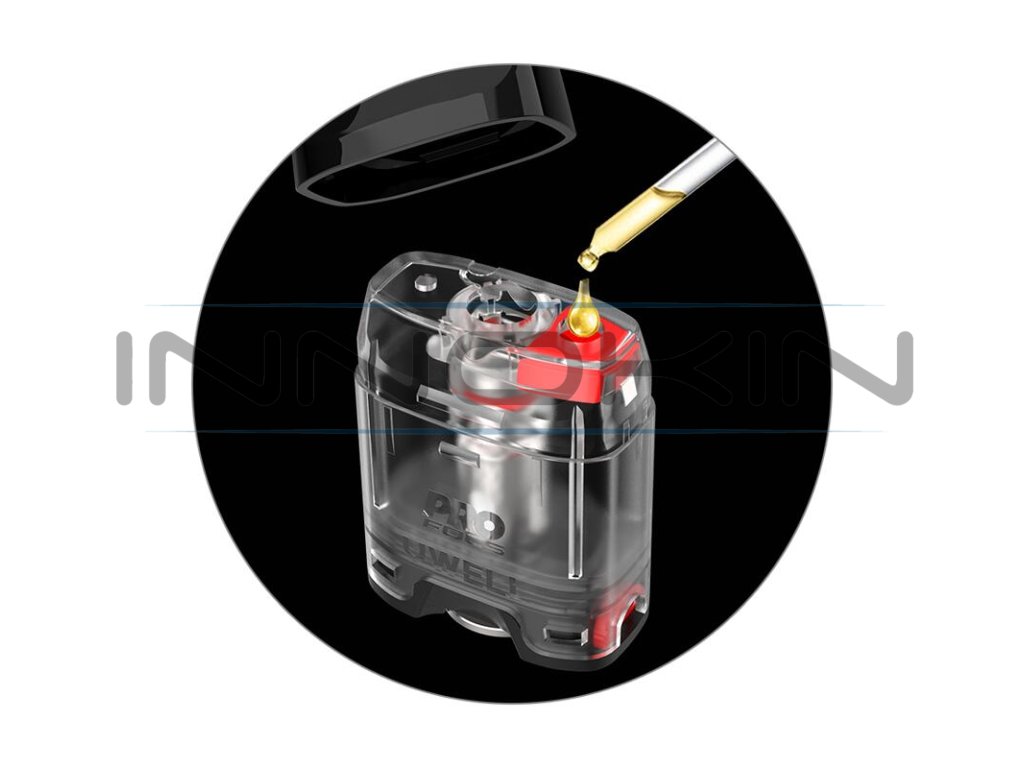 Cartridge ve vrchní části nabídne objem 2 ml. Vystačí si tak s mnohahodinovým používáním bez nutnosti plnění. V případě, že bude nutné cartridge doplnit, jednoduše sejmete náustek ve vrchní části a můžete začít plnit. Tento osvědčený systém je hlavní výsadou celé série Caliburn. Je jednoduchý, rychlý a intuitivní, plnění cartridge ještě nikdy nebylo snazší.