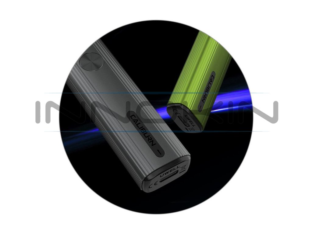 Uwell Caliburn G2 Pod Kit je hrdým nástupcem prvního modelu Caliburn G od výrobce Uwell. Nabídne několik skvělých vylepšení pro ještě snazší každodenní využití a zároveň přináší stylový design a ergonomickou konstrukci s celou řadou barevných zpracování. Celé tělo je vyrobeno z lehké hliníkové slitiny, celková hmotnost e-cigarety činí jen 36 g, v ruce ji tak proto ani neucítíte a můžete si ji také snadno vzít kamkoliv s sebou. Rozměry činí jen 110,5 x 22,5 x 13 mm. Ve vrchní části se nachází ergonomicky tvarovaný náustek cartridge pro co nejpříjemnější potahování. V těle se nachází integrovaná baterie s kapacitou 750 mAh pro dlouhé hodiny nerušeného vapování. V případě potřeby ji budete moci kdykoliv efektivně rychle dobít pomocí portu USB-C. Samozřejmostí je také možnost volby samotného žhavení. Můžete volit mezi automatickým spínáním žhavení a mezi použitím manuálního spínacího tlačítka pro žhavení.
