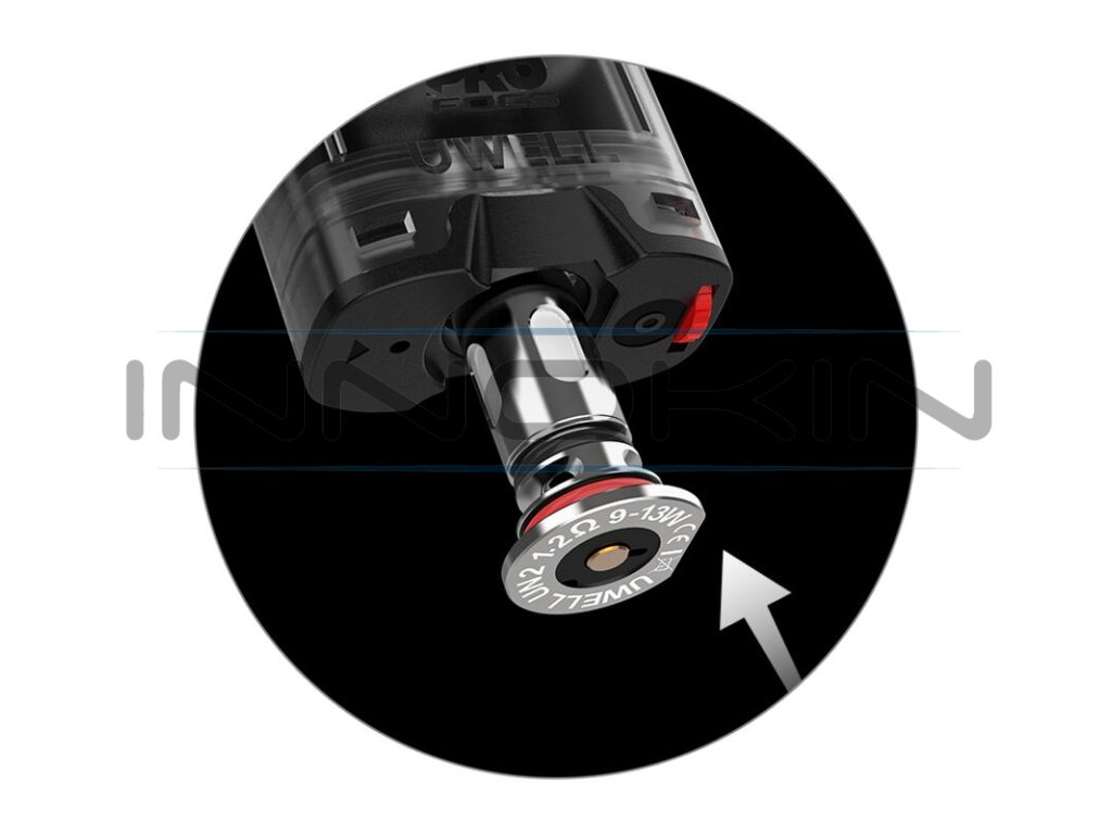 Novinkou je přítomnost unikátního bezpečnostního prvku. Zařízení disponuje haptickou vibrační odezvou, která vás v případě závady informuje mírným zavibrováním. Tato vibrace se projeví například v případě zkratu, nebo při nízkém napětí baterie, případně při překročení limitu pro jeden potah. Budete tak mít rychlý přehled o tom, co se se zařízením právě děje. Cartridge ve vrchní části je vyráběna s technologií Pro-FOCS, která klade důraz na maximálně věrné a bohaté podání chuti. Cartridge disponuje objemem 2 ml a nabídne jednoduchý systém vrchního plnění pouhým sejmutím náustku. Je kompatibilní s tělísky UN2 Meshed-H, přičemž v základním balení na vás čekají dvě tělíska s mesh pletivem a odpory 0,8 ohm a 1,2 ohm. Nabídnou skvělý výběr mezi utaženým MTL potahem a vzdušnějším MTL potahem připomínajícím RDL. Uwell Caliburn G2 Pod Kit je všestranné zařízení, jehož jednoduchost a praktičnost vás ohromí.