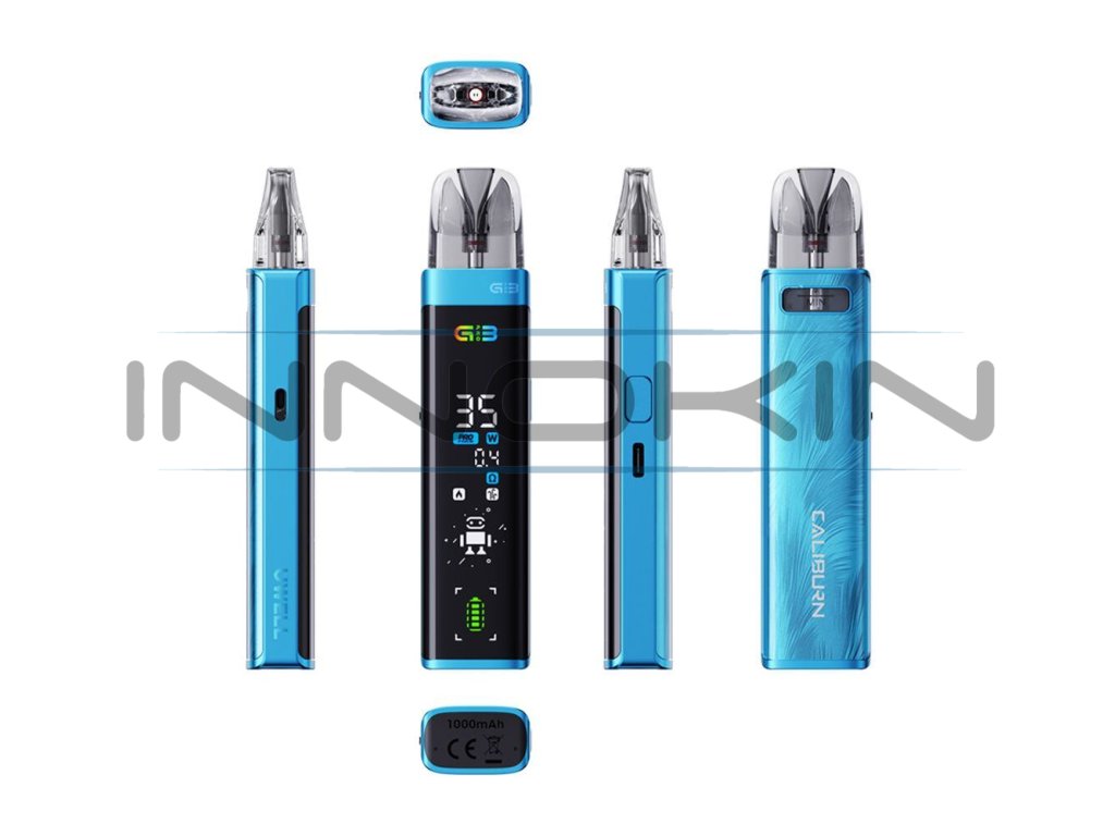 Uwell Caliburn G3 Pro Pod Kit představuje revoluci ve světě pod systémů díky masivnímu full-screen displeji v přední části, dynamickému uživatelskému rozhraní a sofistikovanému ovládání. Díky celobarevnému rozhraní na předním panelu budete mít všechny informace hezky jako na dlani. Ve spojení s novými cartridgemi Caliburn G3 s odporem 0,4 ohm navíc vykouzlíte více páry, než kdykoliv předtím. Vše potom umocní integrovaná baterie s kapacitou 1000mAh, podpora dvou metod spínání potahu a možnost regulace výstupního výkonu v ohromujícím rozsahu 5 - 35W. Vrhněte se do vapování s podporou cartridgí G3 a technologií Pro-FOCS pro co nejvýraznější chuť. Futuristický pod systém Caliburn G3 Pro naplno uspokojí každodenní potřeby všech vaperů.