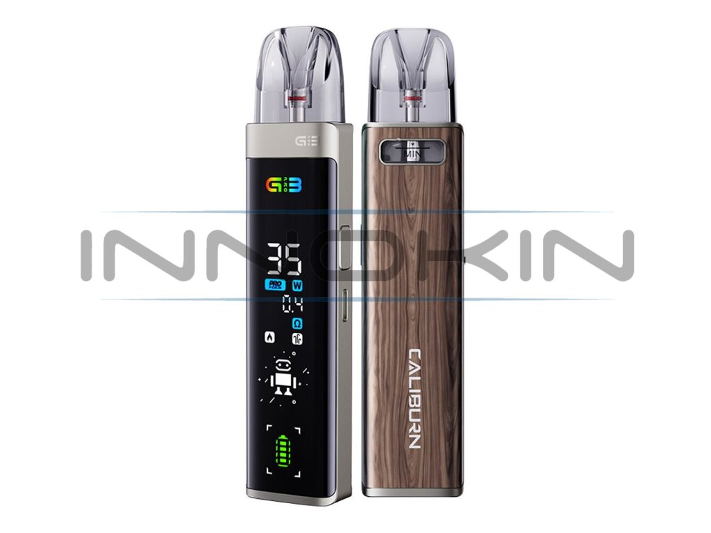 Uwell Caliburn G3 Pro Pod Kit představuje revoluci ve světě pod systémů díky masivnímu full-screen displeji v přední části, dynamickému uživatelskému rozhraní a sofistikovanému ovládání. Díky celobarevnému rozhraní na předním panelu budete mít všechny informace hezky jako na dlani. Ve spojení s novými cartridgemi Caliburn G3 s odporem 0,4 ohm navíc vykouzlíte více páry, než kdykoliv předtím. Vše potom umocní integrovaná baterie s kapacitou 1000mAh, podpora dvou metod spínání potahu a možnost regulace výstupního výkonu v ohromujícím rozsahu 5 - 35W. Vrhněte se do vapování s podporou cartridgí G3 a technologií Pro-FOCS pro co nejvýraznější chuť. Futuristický pod systém Caliburn G3 Pro naplno uspokojí každodenní potřeby všech vaperů.