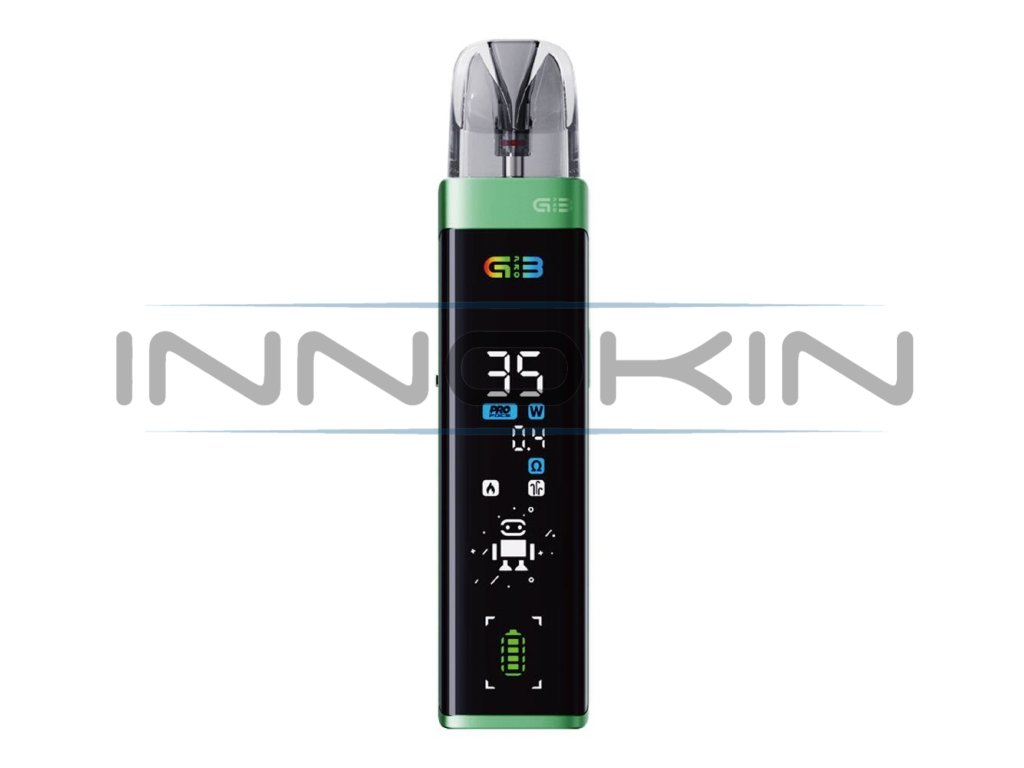 Uwell Caliburn G3 Pro Pod Kit představuje revoluci ve světě pod systémů díky masivnímu full-screen displeji v přední části, dynamickému uživatelskému rozhraní a sofistikovanému ovládání. Díky celobarevnému rozhraní na předním panelu budete mít všechny informace hezky jako na dlani. Ve spojení s novými cartridgemi Caliburn G3 s odporem 0,4 ohm navíc vykouzlíte více páry, než kdykoliv předtím. Vše potom umocní integrovaná baterie s kapacitou 1000mAh, podpora dvou metod spínání potahu a možnost regulace výstupního výkonu v ohromujícím rozsahu 5 - 35W. Vrhněte se do vapování s podporou cartridgí G3 a technologií Pro-FOCS pro co nejvýraznější chuť. Futuristický pod systém Caliburn G3 Pro naplno uspokojí každodenní potřeby všech vaperů.