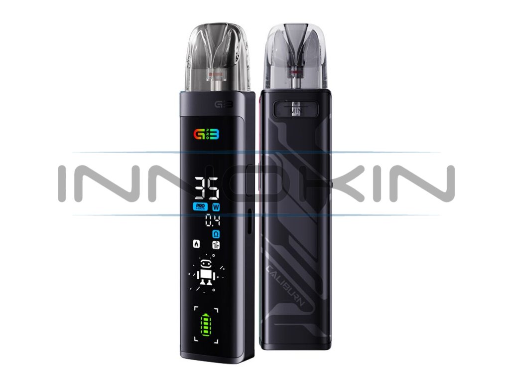 Uwell Caliburn G3 Pro Pod Kit představuje revoluci ve světě pod systémů díky masivnímu full-screen displeji v přední části, dynamickému uživatelskému rozhraní a sofistikovanému ovládání. Díky celobarevnému rozhraní na předním panelu budete mít všechny informace hezky jako na dlani. Ve spojení s novými cartridgemi Caliburn G3 s odporem 0,4 ohm navíc vykouzlíte více páry, než kdykoliv předtím. Vše potom umocní integrovaná baterie s kapacitou 1000mAh, podpora dvou metod spínání potahu a možnost regulace výstupního výkonu v ohromujícím rozsahu 5 - 35W. Vrhněte se do vapování s podporou cartridgí G3 a technologií Pro-FOCS pro co nejvýraznější chuť. Futuristický pod systém Caliburn G3 Pro naplno uspokojí každodenní potřeby všech vaperů.