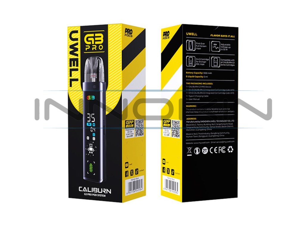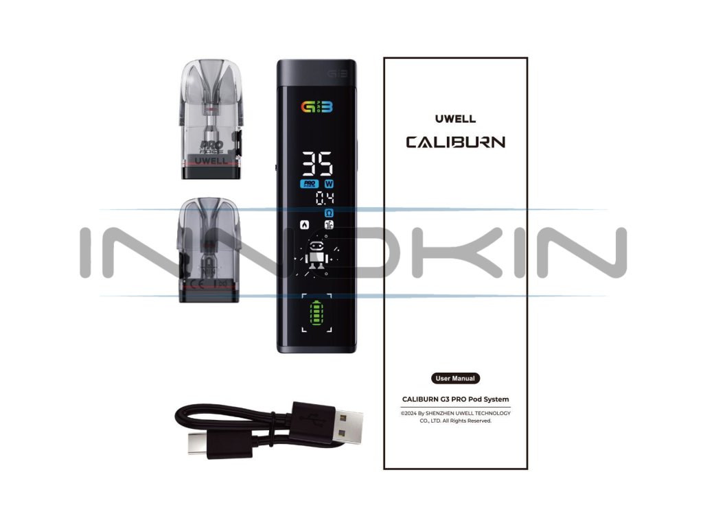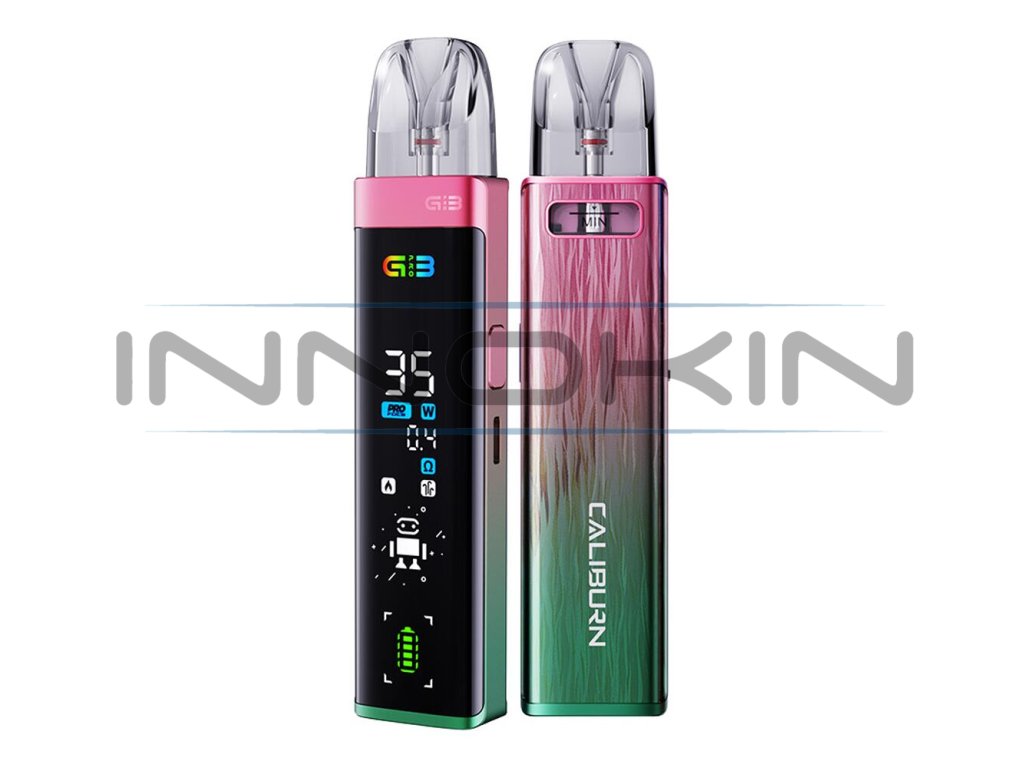 Uwell Caliburn G3 Pro Pod Kit představuje revoluci ve světě pod systémů díky masivnímu full-screen displeji v přední části, dynamickému uživatelskému rozhraní a sofistikovanému ovládání. Díky celobarevnému rozhraní na předním panelu budete mít všechny informace hezky jako na dlani. Ve spojení s novými cartridgemi Caliburn G3 s odporem 0,4 ohm navíc vykouzlíte více páry, než kdykoliv předtím. Vše potom umocní integrovaná baterie s kapacitou 1000mAh, podpora dvou metod spínání potahu a možnost regulace výstupního výkonu v ohromujícím rozsahu 5 - 35W. Vrhněte se do vapování s podporou cartridgí G3 a technologií Pro-FOCS pro co nejvýraznější chuť. Futuristický pod systém Caliburn G3 Pro naplno uspokojí každodenní potřeby všech vaperů.
