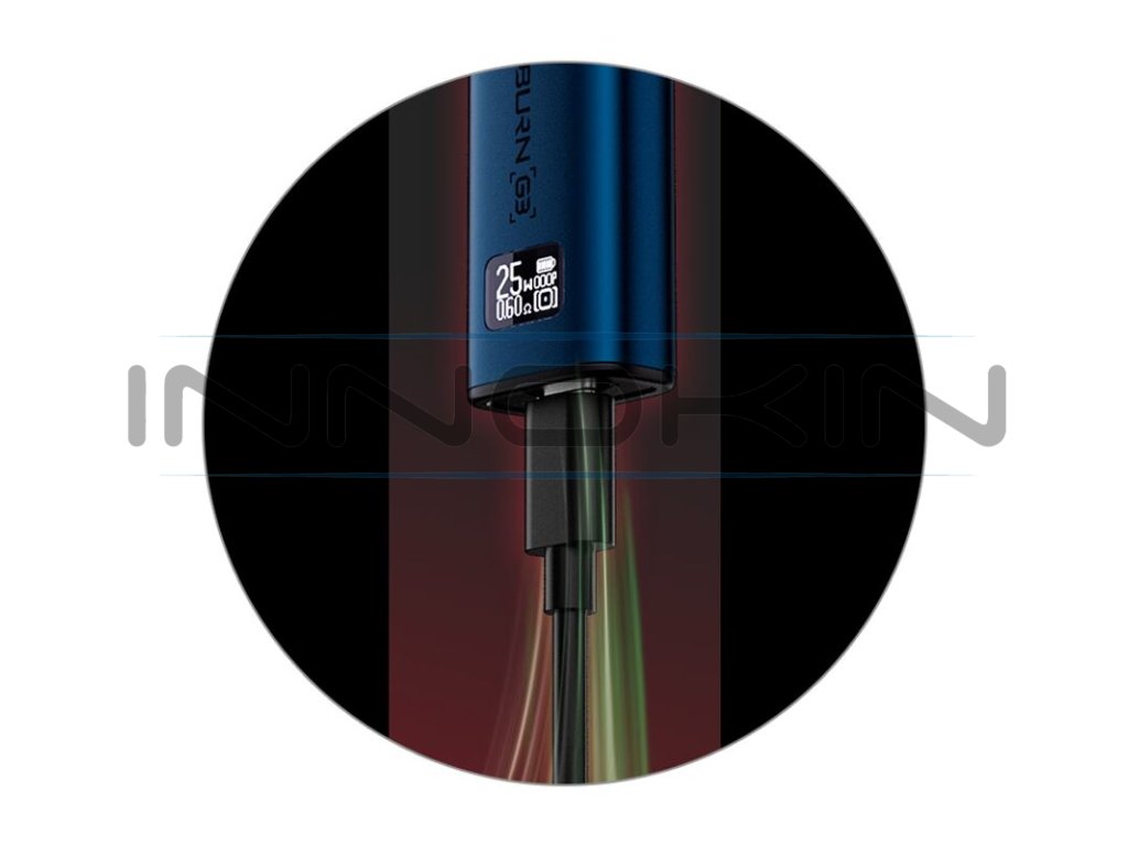 Ve spodní části e-cigarety Uwell Caliburn G3 Pod Kit se nachází moderní dobíjecí port typu USB-C. Ten zvládne rychlé nabíjení proudem až 2A. Díky této podpoře rychlého nabíjení se nemusíte obávat zdlouhavých dobíjecích cyklů, do plné kapacity se tedy zvládne dobít nesmírně rychle a budete ji tak moci mít téměř neustále nabitou.
