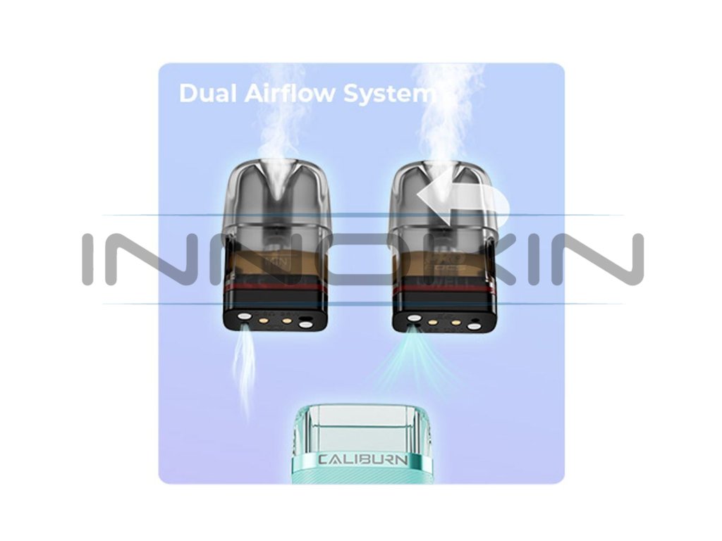 I přesto, že zařízení Caliburn G3 Lite nedisponuje tradiční manuální regulací přívodu vzduchu, umožňuje praktické nastavení tuhosti díky duálnímu systému airflow. Cartridge můžete na tělo nasadit jedním ze dvou směrů, přičemž každý směr vám dodá rozdílnou tuhost. Díky tomuto praktickému prvku si tak budete moci snadno volit mezi MTL a RDL potahem.