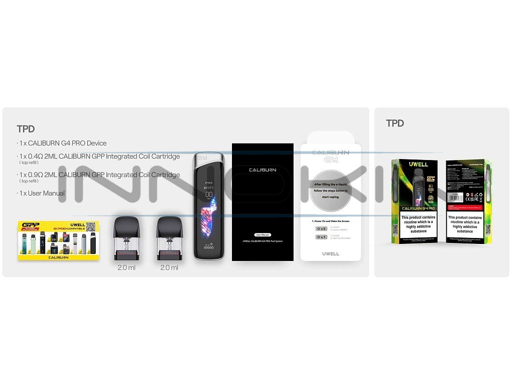 - 1x Tělo Uwell Caliburn G4 Pod (integrovaná baterie 1300mAh)
