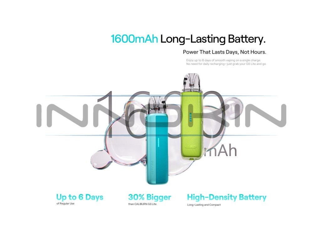 Caliburn G5 Lite SE od značky Uwell kombinuje prémiové materiály, moderní design a dlouhou výdrž v kompaktním těle vhodném pro každodenní provoz. Konstrukce z PC materiálu doplněná o kožený povrch zajišťuje příjemný úchop, odolnost a zároveň nízkou hmotnost, což z přístroje dělá praktickou volbu do kapsy i batohu. Integrovaná vysokokapacitní baterie 1600mAh poskytuje stabilní výkon až 35W a umožňuje několikadenní používání bez nutnosti častého dobíjení. Technologie PRO-FOCS 4.0 zajišťuje čisté podání chuti, optimalizovaný přenos výkonu a delší životnost cartridge, což je klíčové zejména z pohledu dlouhodobé spokojenosti uživatelů. Zařízení je vybaveno duálním systémem regulace airflow – jemné doladění tahu je možné jak posuvným ovladačem, tak otočením cartridge. Díky tomu lze snadno přepínat mezi utaženým MTL a volnějším RDL stylem vapování bez nutnosti výměny komponentů. Přehledný 4-Bar Gradient LED indikátor reaguje na potah a současně informuje o stavu baterie v reálném čase. Součástí balení je cartridge Caliburn GPP s odporem 0.6Ω a bočním plněním o objemu 2ml, navržená pro plynulý chod, minimální riziko protékání a konzistentní výkon při každodenním používání. Zařízení je plně kompatibilní s celou řadou cartridgí Caliburn GPP, což zvyšuje flexibilitu nabídky na prodejně.