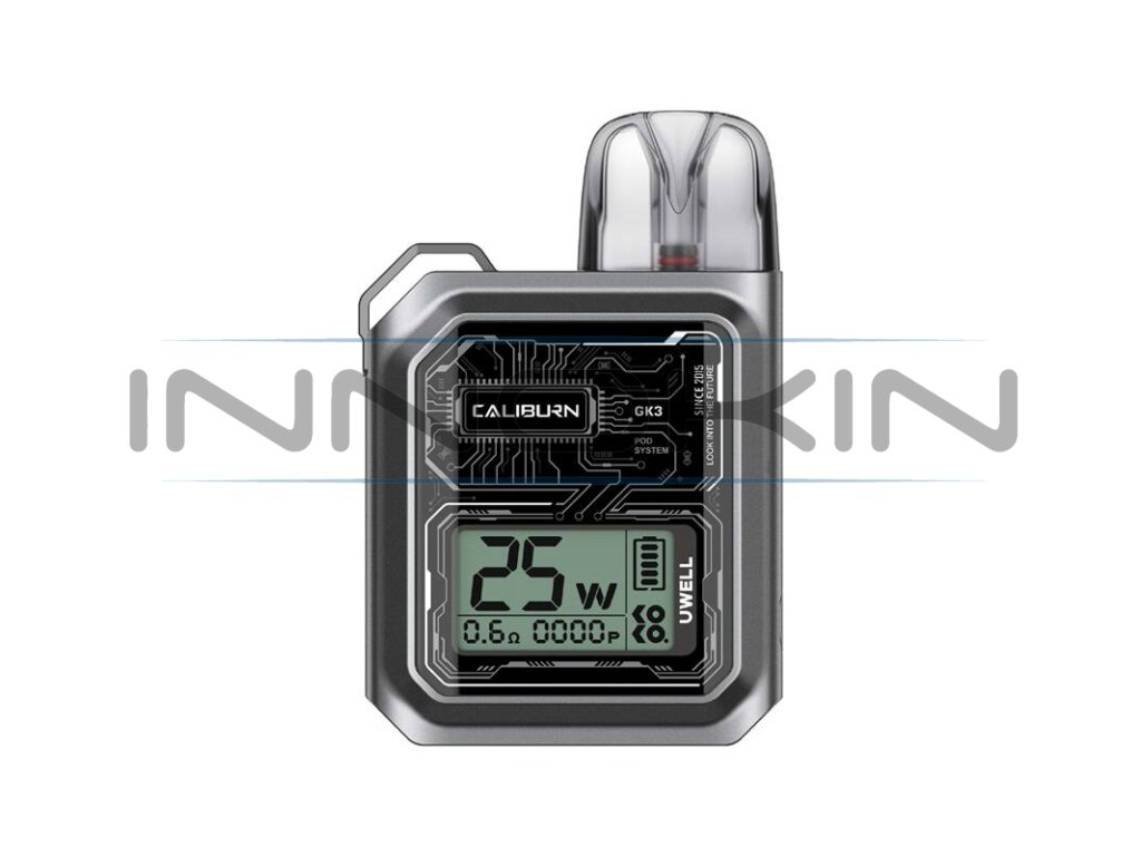 Nekonvenční dílenské zpracování a retro estetika. Přesně tím na sebe poutá pozornost Uwell Caliburn GK3 Pod Kit. Netradičně zpracovaná e-cigareta nabídne stylový motiv tištěných spojů na těle ve spojení s velkým displejem a logem série KOKO v zadní části. Unikátní designové zpracování potom završuje ergonomicky tvarovaná kapesní konstrukce, která přesně padne do dlaně a snadno se přenáší. Caliburn GK3 je nápaditý pod ve všech ohledech.