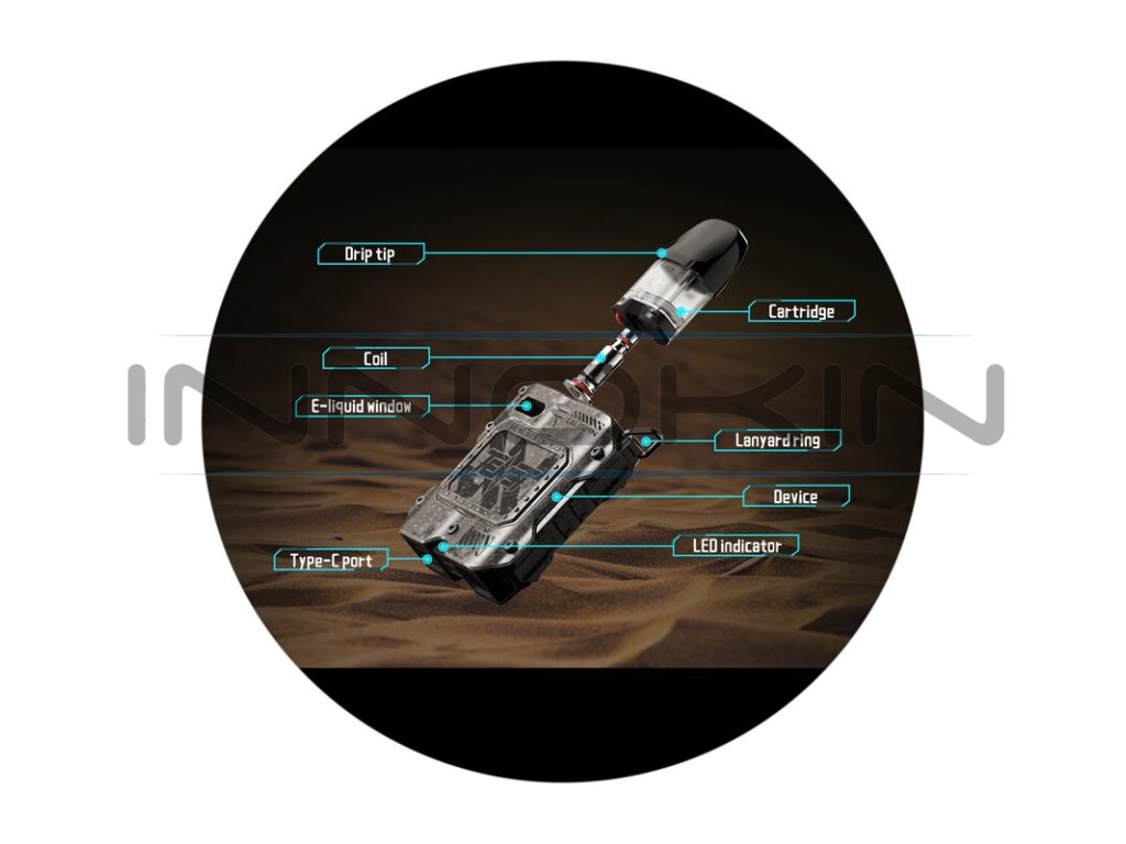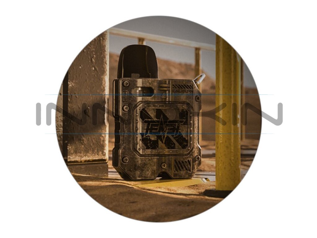Pod systémy ze série Caliburn KOKO lákají na kompaktní rozměry a praktický čtvercový design, který perfektně padne do dlaně. U modelu Uwell Caliburn Tenet KOKO Pod Kit se k těmto praktickým rozměrům přidává také netradiční designové zpracování ze série Tenet, těšit se tak můžete na futuristicky zpracovanou e-cigaretu s kovovou konstrukcí z hliníkové slitiny a polyamidu, která dokáže zaujmout naprosto ve všech směrech. Futuristický a až postapokalyptický vzhled plný výrazných a netradičních konstrukčních prvků je tím správným řešením pro všechny milovníky nekonvenčního designu. E-cigareta nabídne rozměry 73.7 x 50 x 18 mm pro snadné přenášení a hmotnost 61,5 g pro co nejkomfortnější užívání. Uvnitř kompaktního těla na vás potom čeká integrovaná baterie s obrovskou kapacitou 950 mAh pro dlouhé hodiny intenzivního užívání. Baterii můžete kdykoliv dobít pomocí portu USB-C, zařízení podporuje dobíjení proudem až 2A.