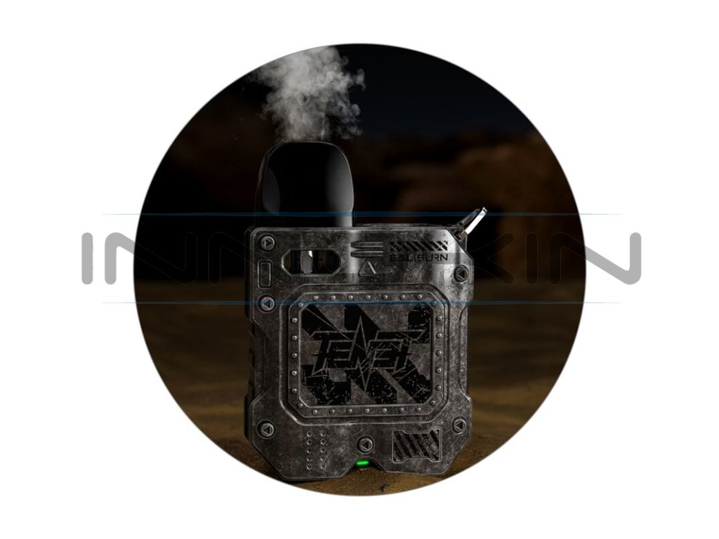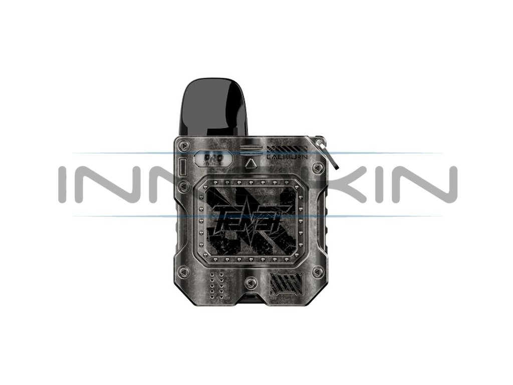 Pod systémy ze série Caliburn KOKO lákají na kompaktní rozměry a praktický čtvercový design, který perfektně padne do dlaně. U modelu Uwell Caliburn Tenet KOKO Pod Kit se k těmto praktickým rozměrům přidává také netradiční designové zpracování ze série Tenet, těšit se tak můžete na futuristicky zpracovanou e-cigaretu s kovovou konstrukcí z hliníkové slitiny a polyamidu, která dokáže zaujmout naprosto ve všech směrech. Futuristický a až postapokalyptický vzhled plný výrazných a netradičních konstrukčních prvků je tím správným řešením pro všechny milovníky nekonvenčního designu. E-cigareta nabídne rozměry 73.7 x 50 x 18 mm pro snadné přenášení a hmotnost 61,5 g pro co nejkomfortnější užívání. Uvnitř kompaktního těla na vás potom čeká integrovaná baterie s obrovskou kapacitou 950 mAh pro dlouhé hodiny intenzivního užívání. Baterii můžete kdykoliv dobít pomocí portu USB-C, zařízení podporuje dobíjení proudem až 2A.