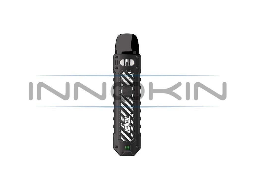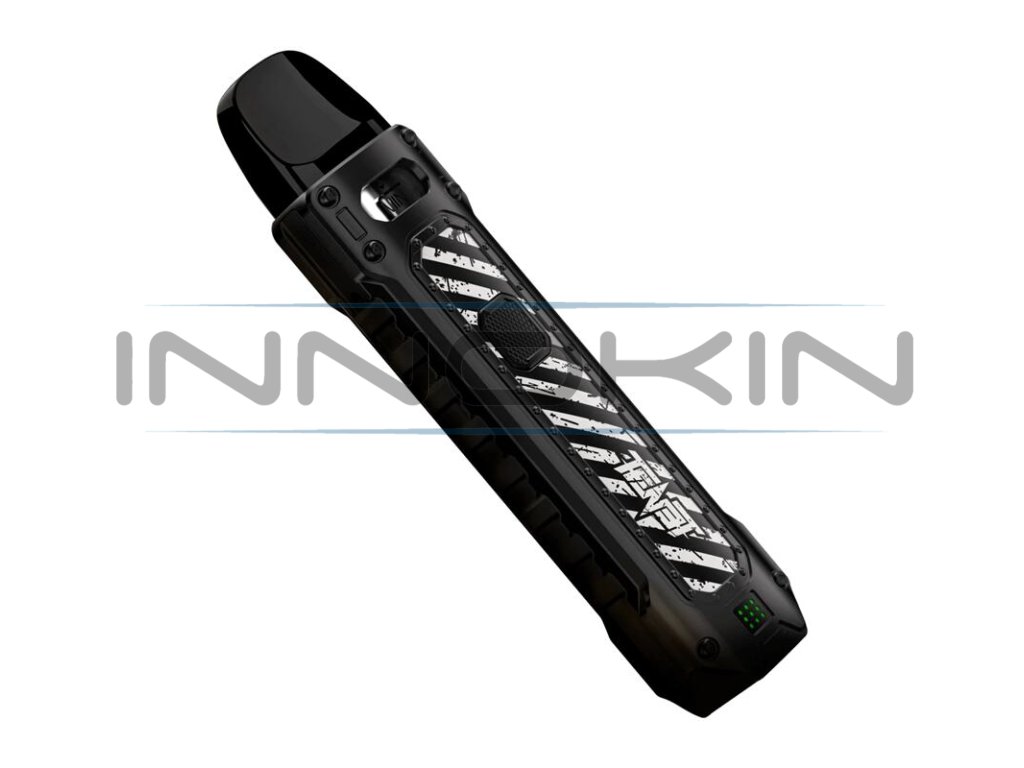 Netradiční designový přírůstek do série Caliburn se představuje pod tajemným názvem Uwell Caliburn Tenet Pod Kit. Jedná se o jednoduchý pod systém se stylovou výbavou, který se hodí jak pro začátečníky, tak také pro pokročilé uživatele a pro milovníky nekonvenčního designového zpracování. Uwell Caliburn Tenet Pod Kit přichází s futuristickým zpracováním a jednolitým tělem z hliníkové slitiny s polyamidovými doplňky. Esteticky vyladěný model nabídne nízkou hmotnost pouhých 50,4 g a vzhled, který evokuje robustnost a odolnost. V kompaktním těle s rozměry 110.9 x 25.1 x 16.3 mm se nachází integrovaná baterie se solidní kapacitou 750 mAh pro dlouhé hodiny nerušeného potahování. Ve spodní části najdete praktickou indikační LED diodu pro rychlé zjištění stavu baterie. Tu pak můžete kdykoliv dobít pomocí portu USB-C s podporu 2A nabíjení.
