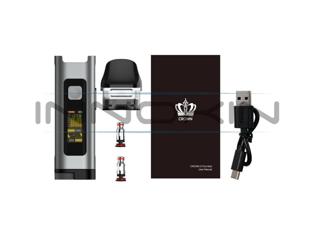 Uwell Crown D Pod Kit je nabušený pod systém, který dokáže ohromit nejen svým minimalistickým zpracováním, ale hlavně svým promakaným uživatelským rozhraním s maximální svobodou při výběru výstupního režimu a celkového nastavení. Jedná se o pokročilejší pod systém, se kterým si budou rozumět hlavně zkušenější vapeři, díky pečlivě naprogramovanému uživatelskému rozhraní si však zařízení velice rychle osvojí také začátečníci. Samotné tělo nabídne rozměry 106 x 28 x 18,5 mm, designově sází výrobce na jistotu a přináší jak širokou nabídku barevných zpracování, tak také tradičněji zpracovanou konstrukci s perfektní ergonomií z lehoučké hliníkové slitiny. Celková hmotnost e-cigarety činí jen 59 g. V jejím těle na vás čeká integrovaná baterie s obrovskou kapacitou 1100 mAh, která se postará o hladký chod celého zařízení a dlouhou výdrž. Baterii budete moci pohodlně dobíjet pomocí USB-C portu. Při samotném žhavení budete mít na výběr hned ze dvou variant potahování. Lze využít tradiční spínací tlačítko, případně automatický systém spínání potahu pouhým potažením z náustku cartridge.